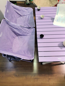 原始人户外折叠桌子便携蛋卷桌露营装备全套折叠野餐桌椅野炊便携野营桌 120薄雾紫+紫色月亮椅*4