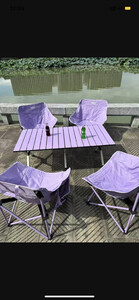 原始人(The Primitive)户外折叠桌椅蛋卷桌露营桌椅全套装备便携式新款桌椅野餐野营摆摊 大号薄雾紫+经典款月亮椅*4