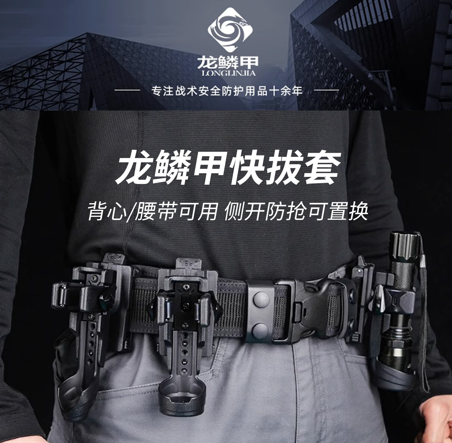 龙鳞甲战术快拔套侧开防抢带锁快拔腰带背心通用棍套手电92快拔八件套全 侧开带锁三件套 均码