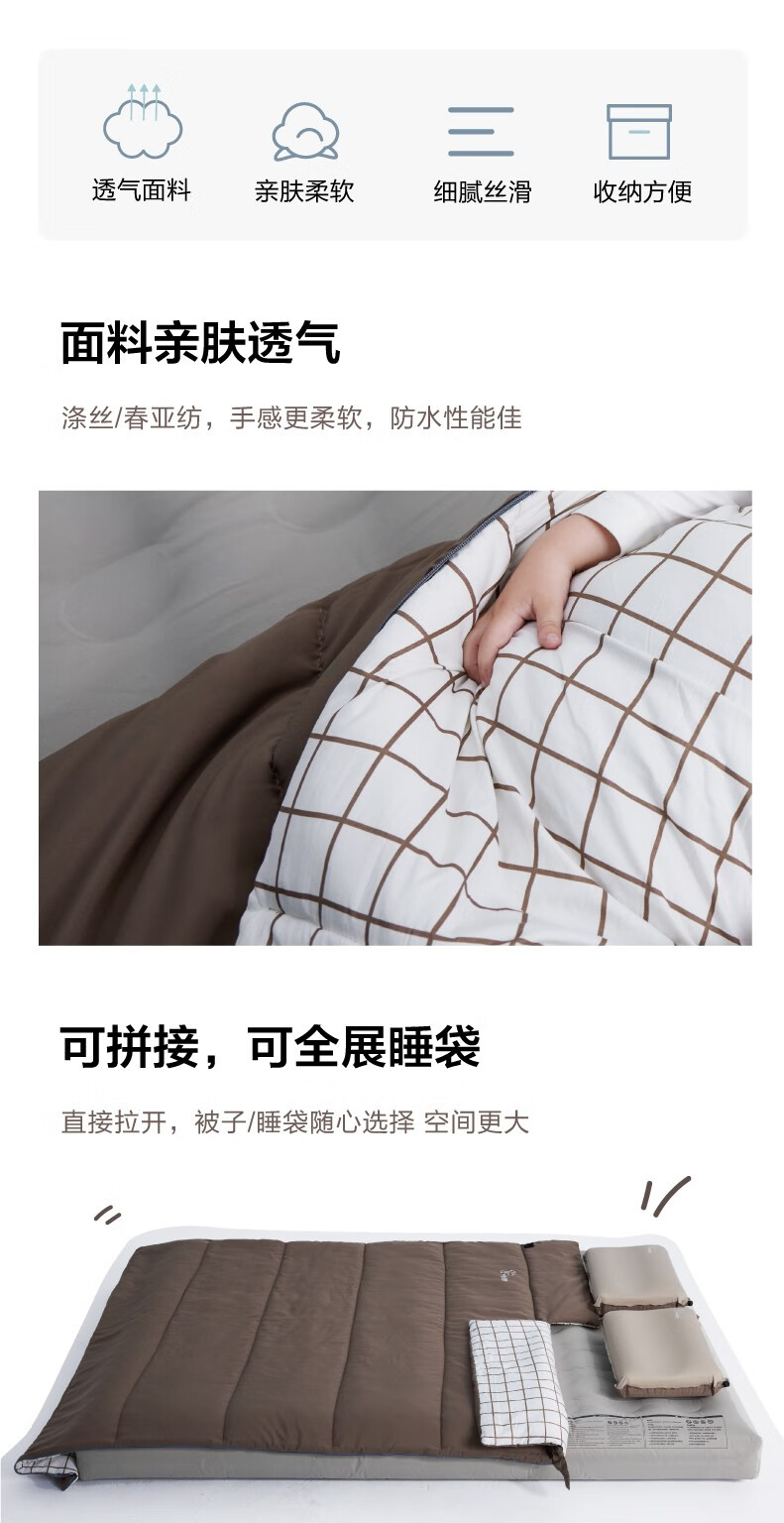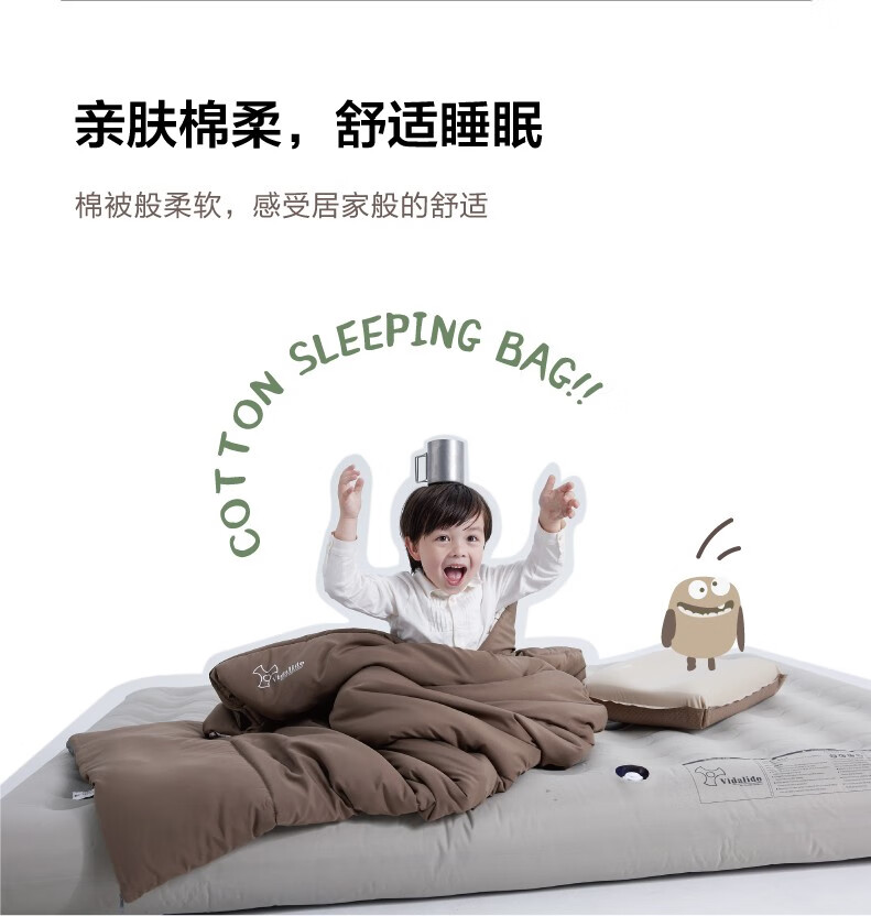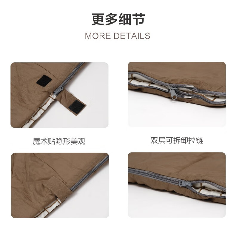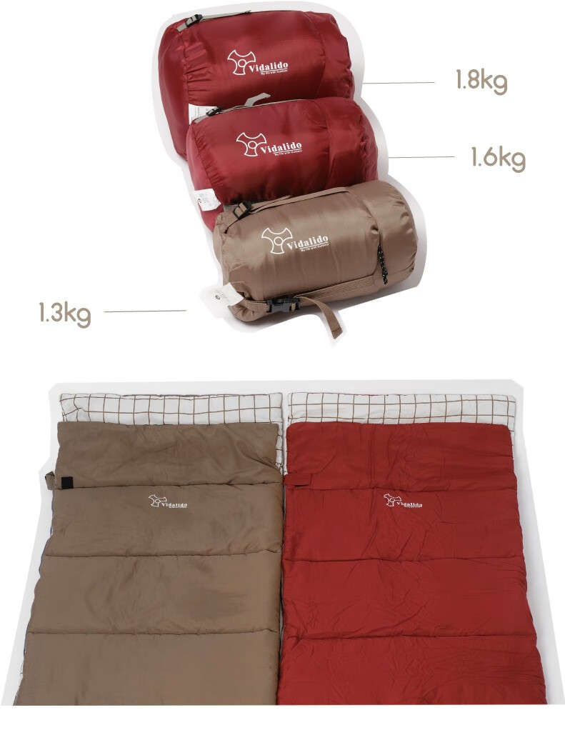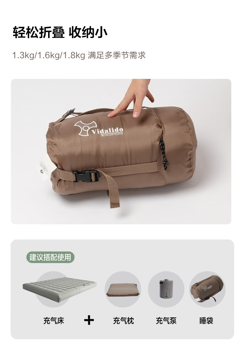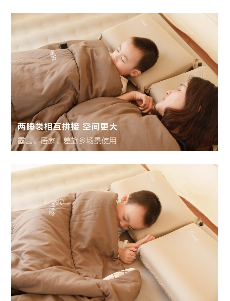 vidalido维达利多户外露营信封式睡袋可拼接双人情侣露营保暖厚棉睡袋 沙色(1.3kg)温标5°-15°