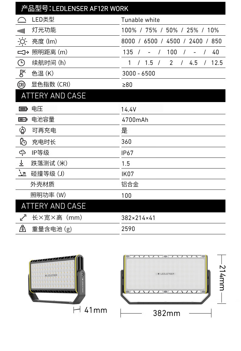 LED LENSER德国莱德雷神泛光灯AF12R WORK AF12R WORK