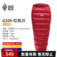 黑冰(BLACKICE)【G系列木乃伊式鹅绒羽绒睡袋】露营保暖抗寒成人羽绒睡袋 红色 G200 L码