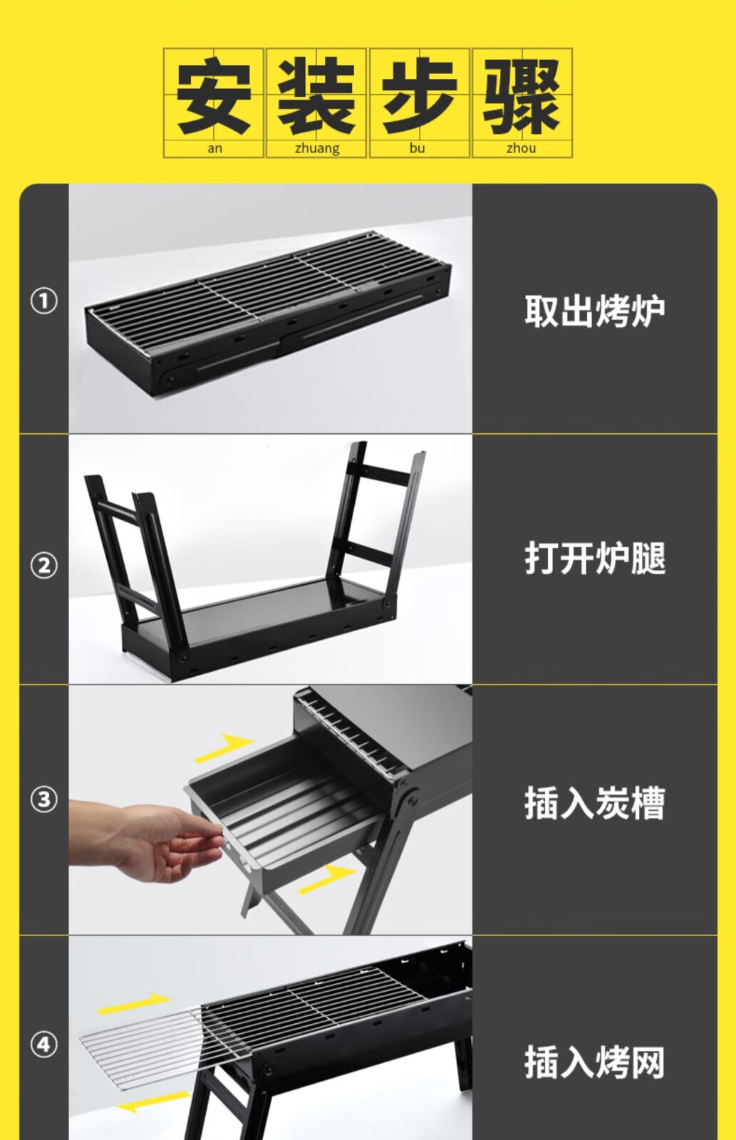 原始人烧烤炉家用折叠便携式小型烤炉烤肉架网户外炉子木炭架子 加厚折叠炉【不锈钢烤网】+3件套