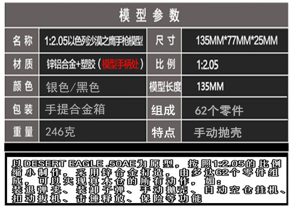 战术虎军迷收藏模型1:2.05缩小合金玩具礼物亲子互动拆装摆件手动抛壳战友退伍男友纪念工艺品银黑2色 黑色+合金箱