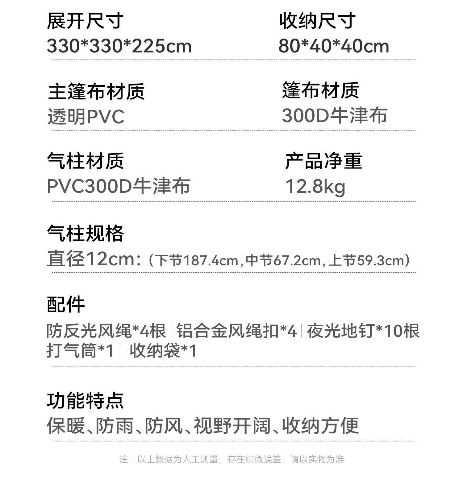 大空间,收纳方便,充气快,观景天窗