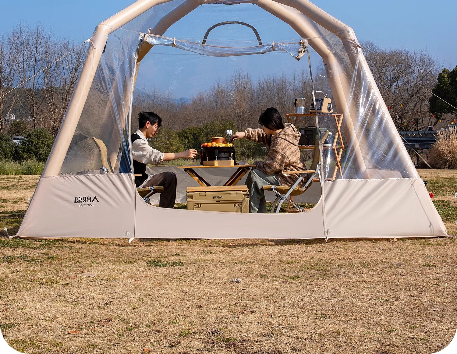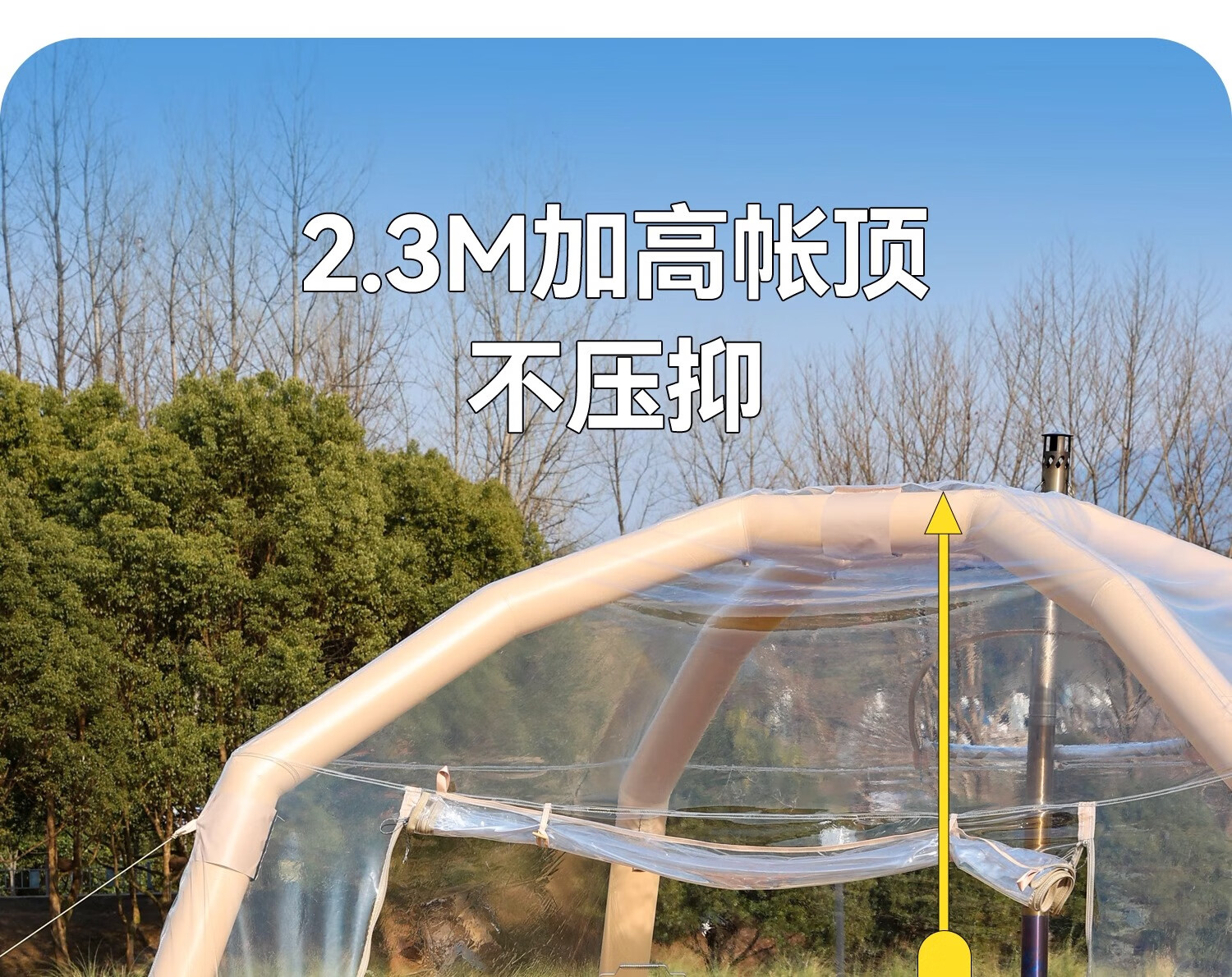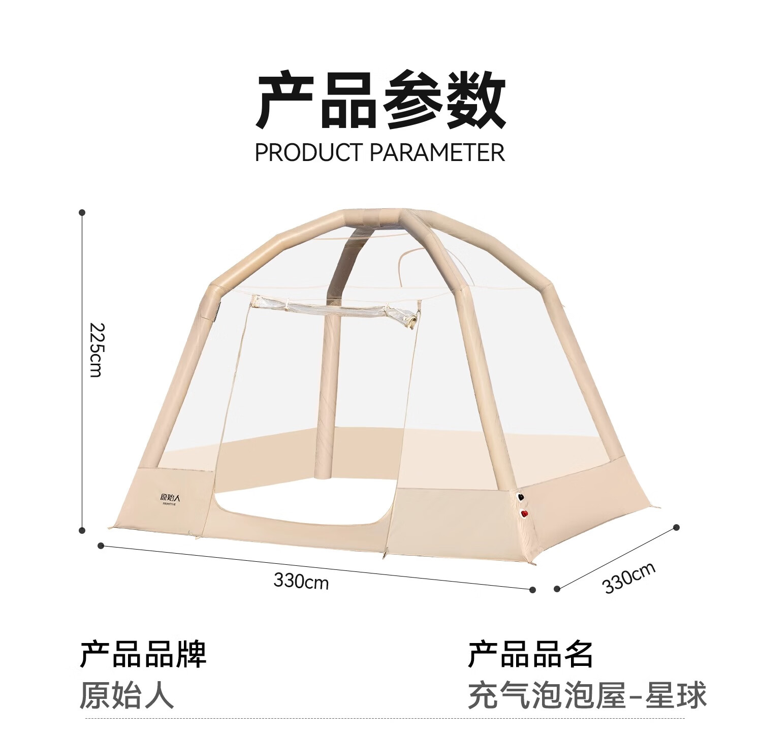 原始人户外透明泡泡屋帐篷双层充气星空房球形冬季防风保暖野营免搭建 【充气自立 全景透明】3.3M*3.3M