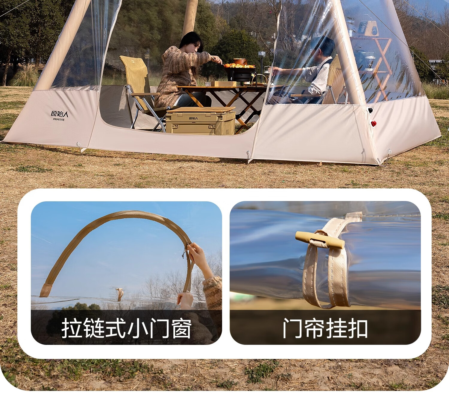 篷爸爸庭院透明阳光房户外聚会移动空间挡风防寒晒太阳保暖含防雨罩 卡其色含防雨罩
