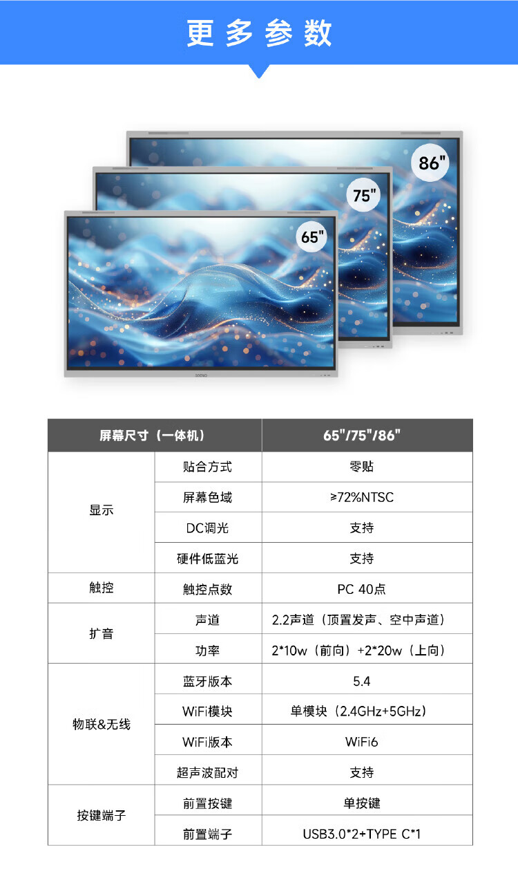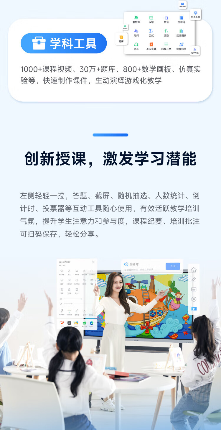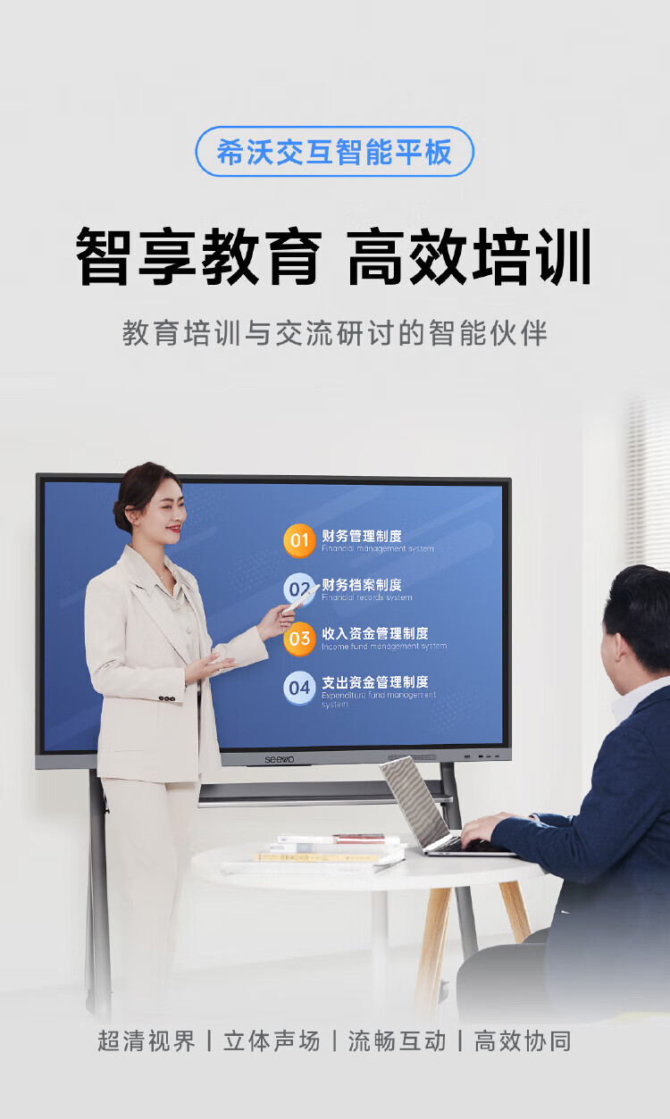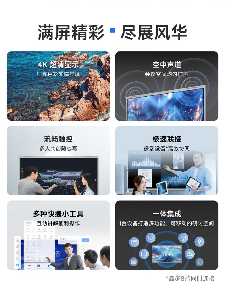 希沃SEEWO65英寸电子白板多媒体教学触摸可移动电视会议平板4k一体机 86英寸(含移动推车) i3 8G 256G(免费送货+安装)