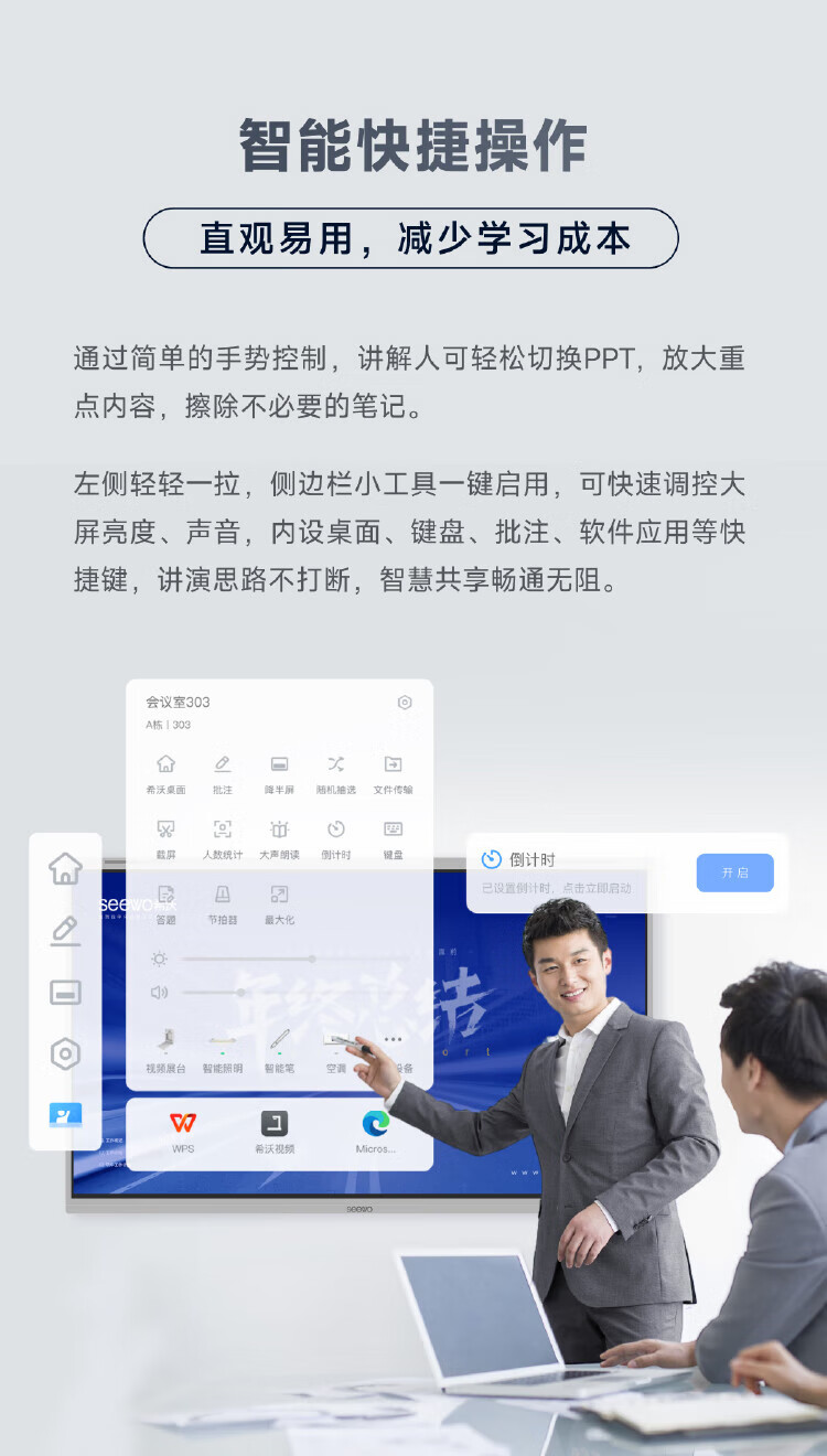 希沃(seewo)多媒体教学教育平板一体机电子白板触摸电视会议4k大屏会议大屏 65英寸+壁挂安装(免费上门安装) i3 8G+256G Win10