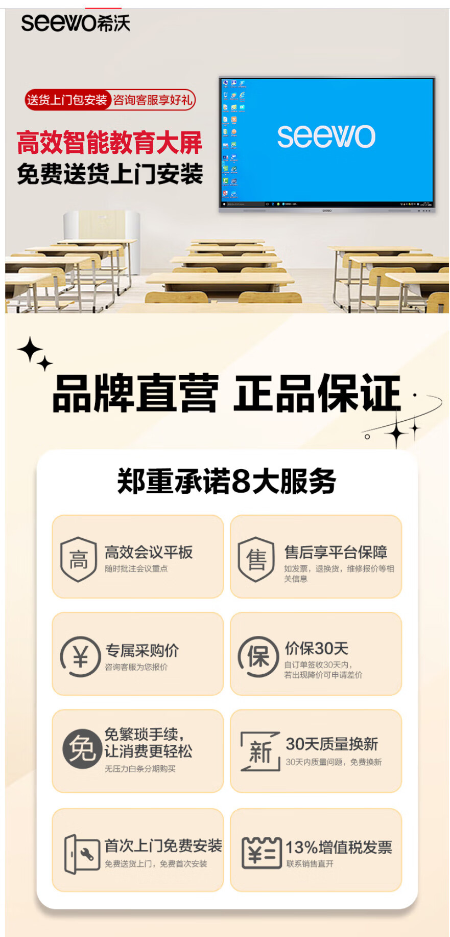 希沃(seewo)希沃教学一体机55/65/75/86英寸 电子白板智能黑板培训触摸会议投 65英寸含 I7 8G 256 送安装