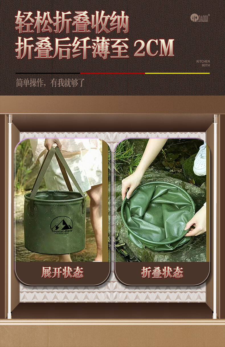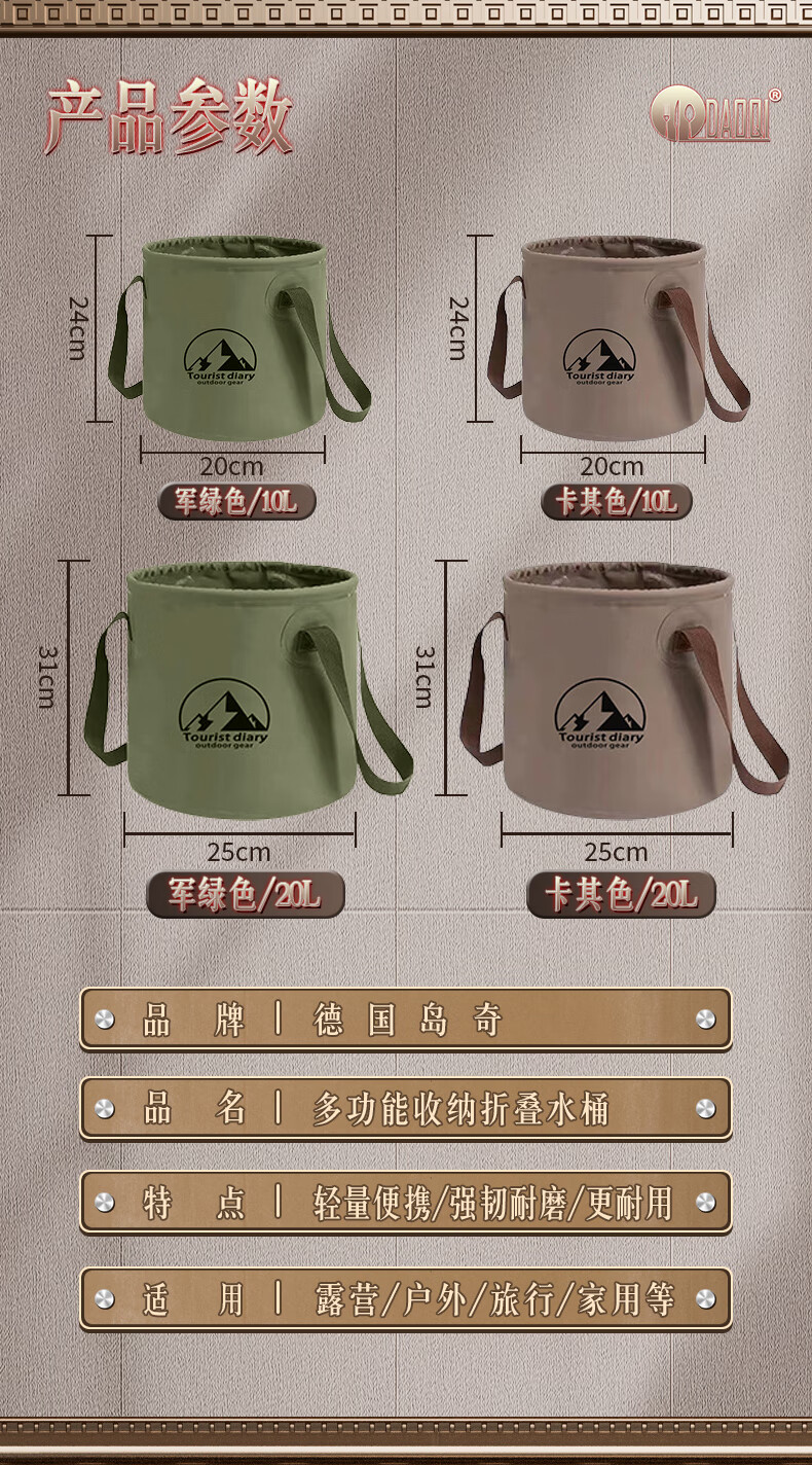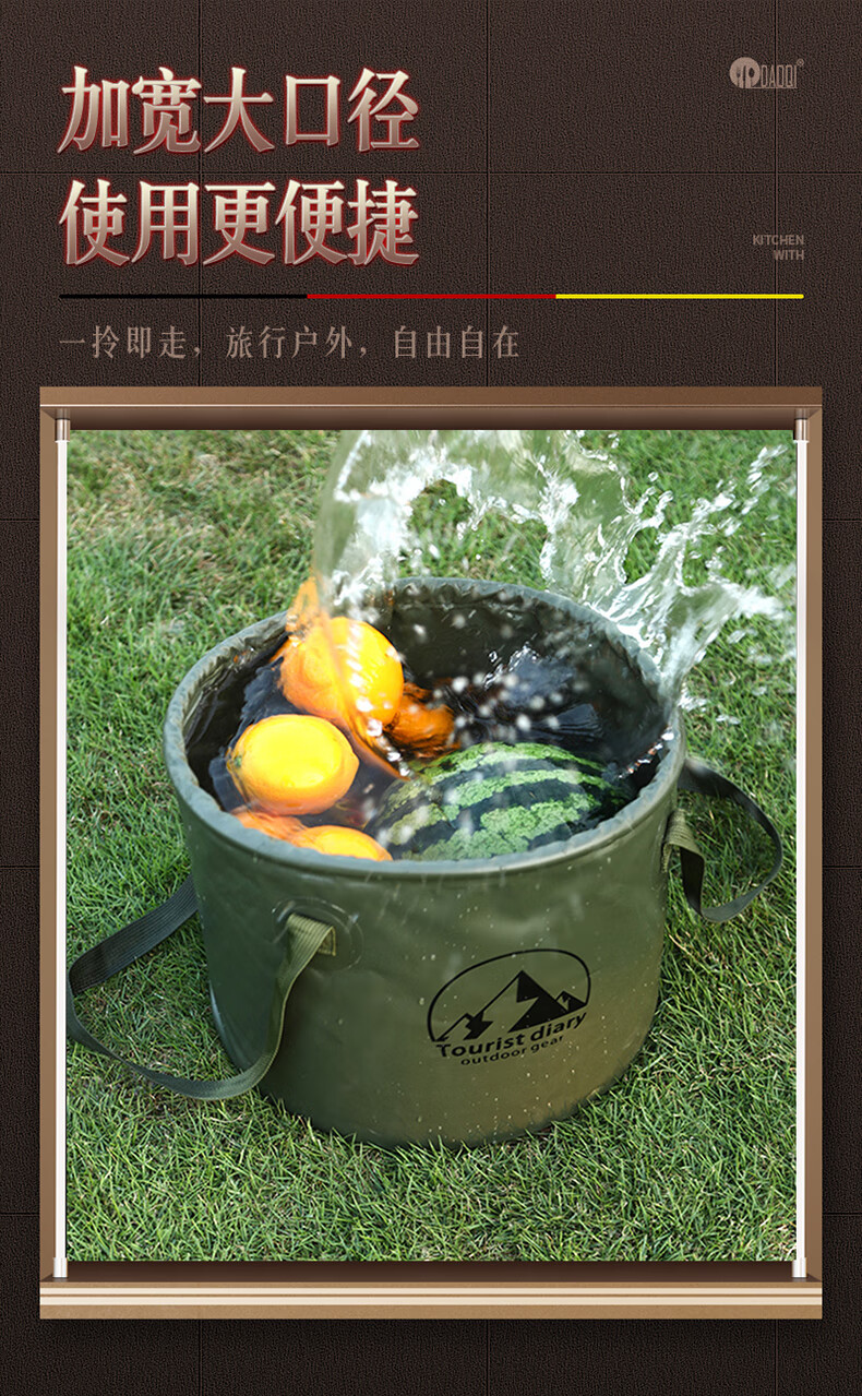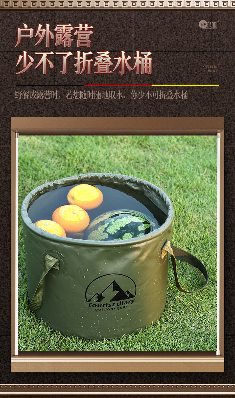 岛奇(Daoqi)户外折叠饮用水桶露营便携式大容量储水桶装水桶车载蓄水泡脚手提 【10L】军绿色/户外水桶