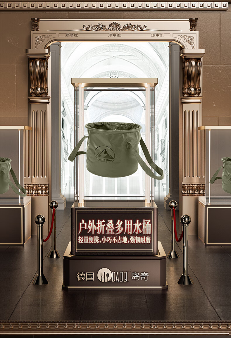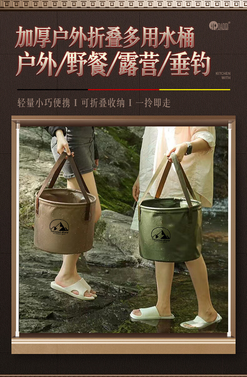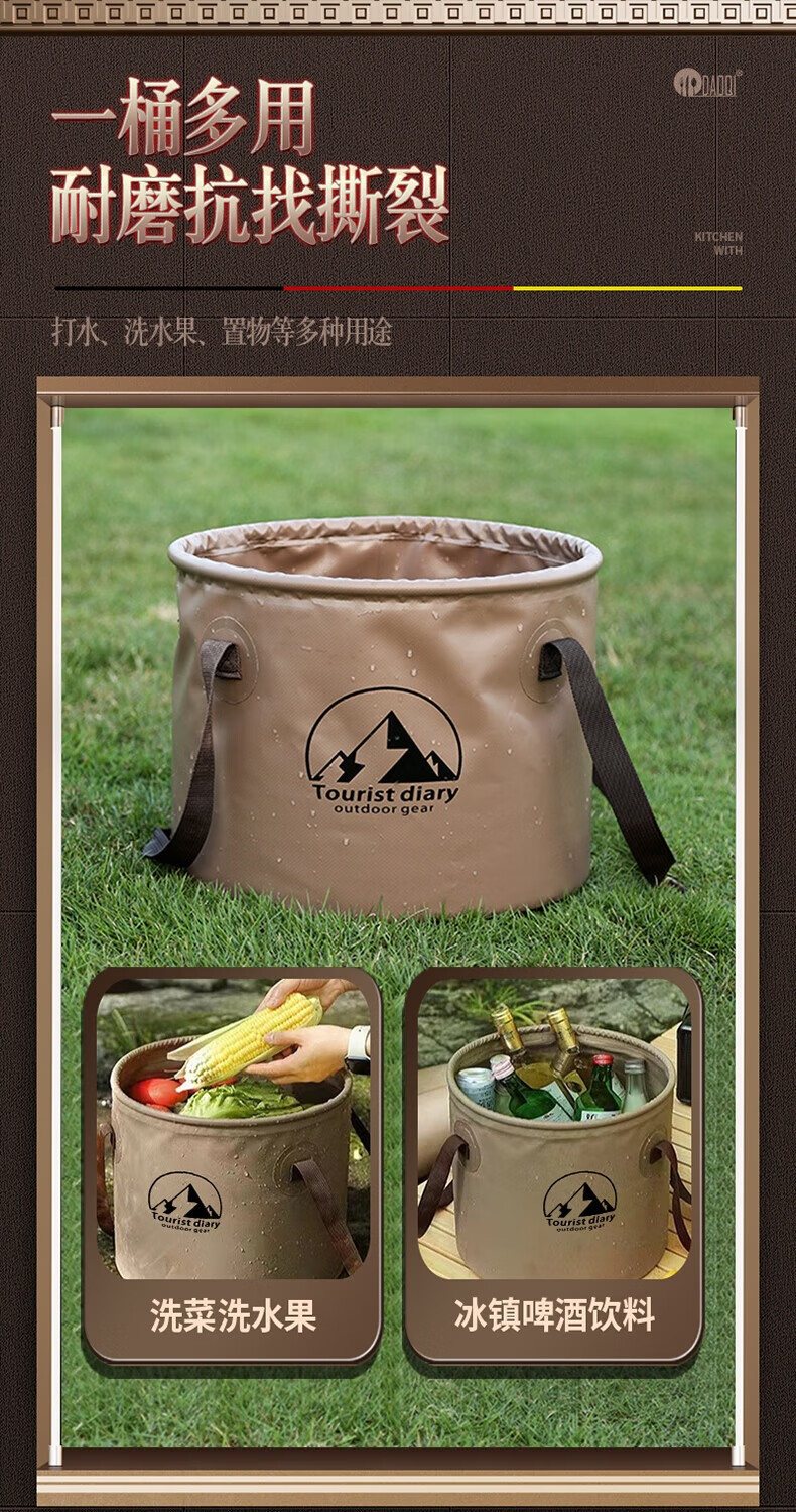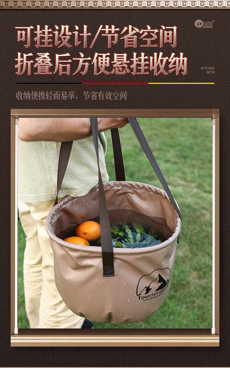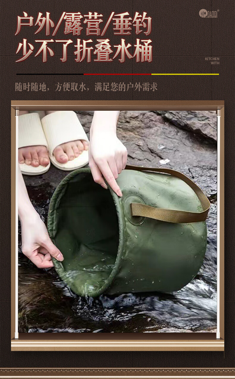 岛奇(Daoqi)户外折叠饮用水桶露营便携式大容量储水桶装水桶车载蓄水泡脚手提 【10L】军绿色/户外水桶