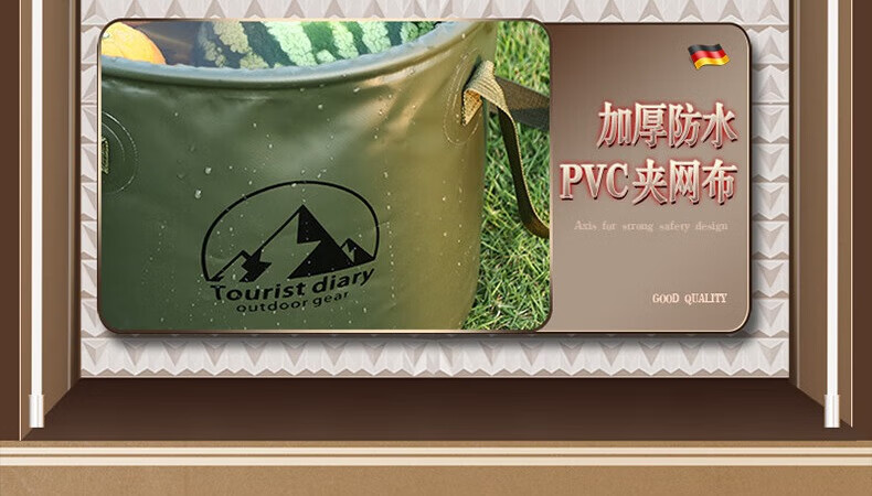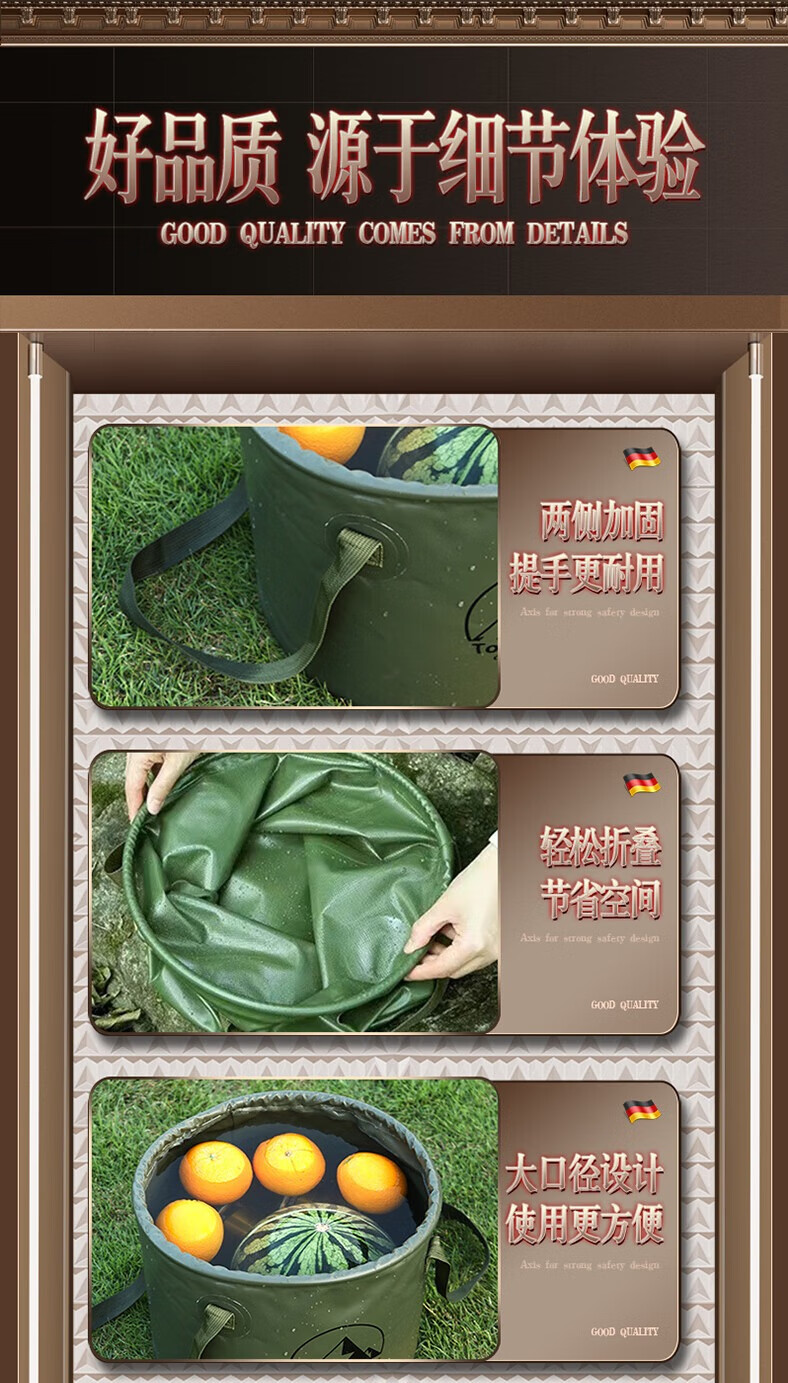 户外水桶 质量很好 很结实 也没有异味 带出门很方便实用 很满意