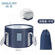 尚官(SingleLady)便携式可折叠泡脚桶户外旅行泡脚袋洗衣盆洗脚水桶水盆脸盆带收纳袋 深海蓝-中号【适合46码以内】