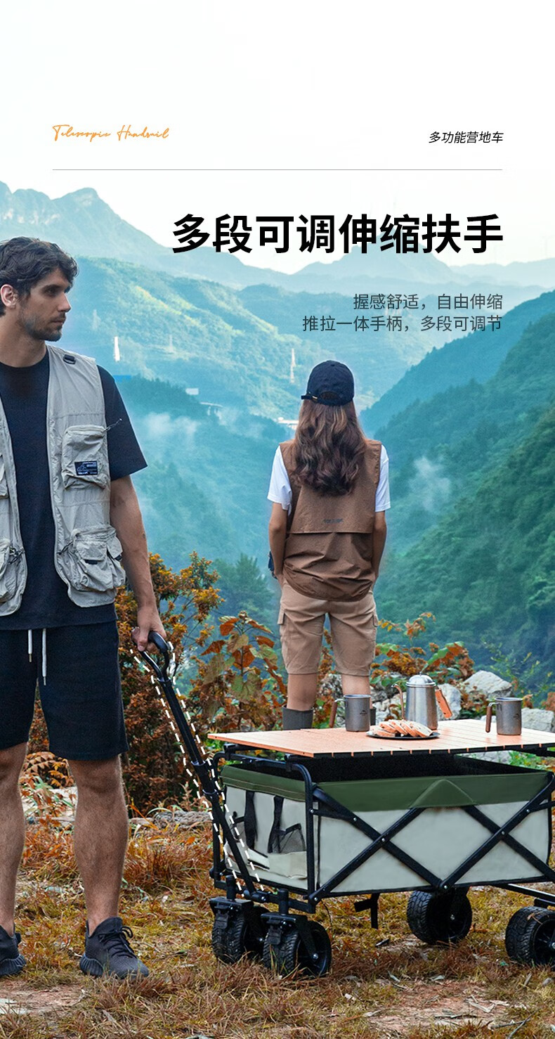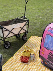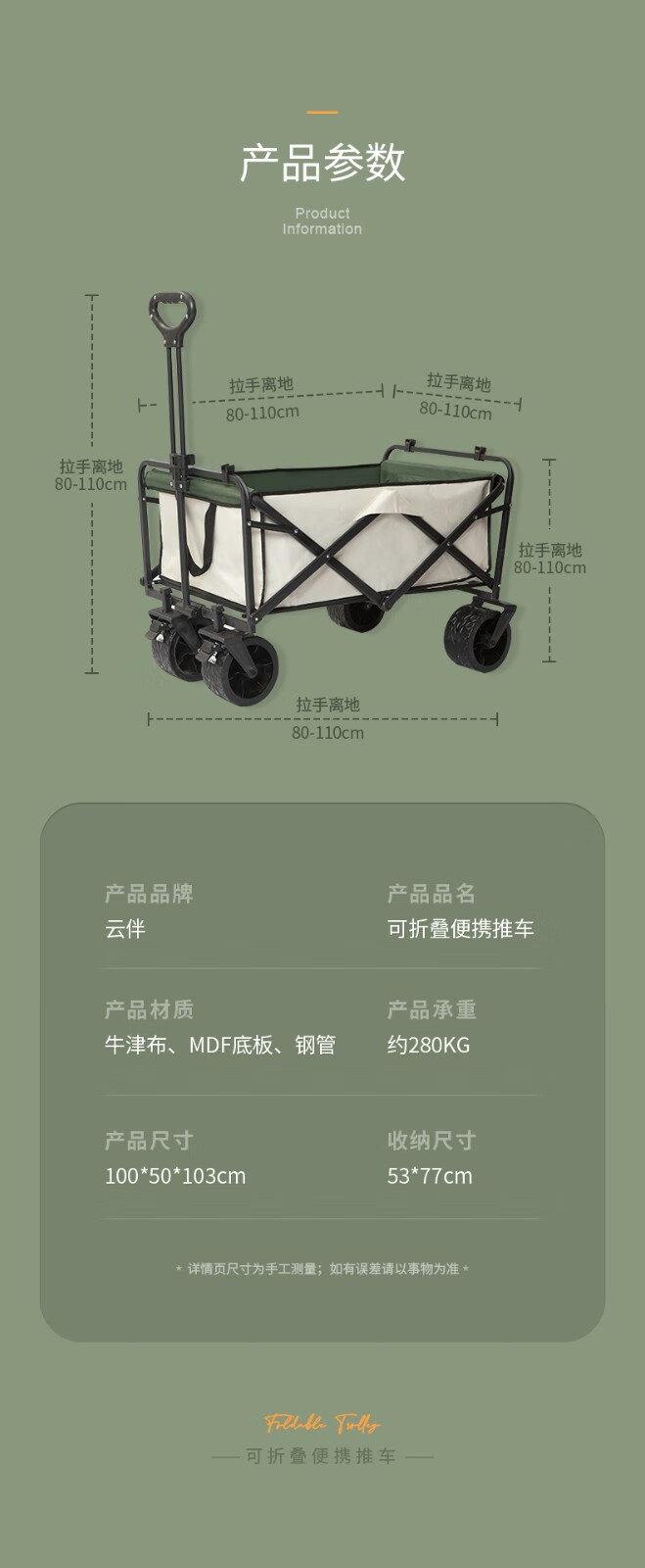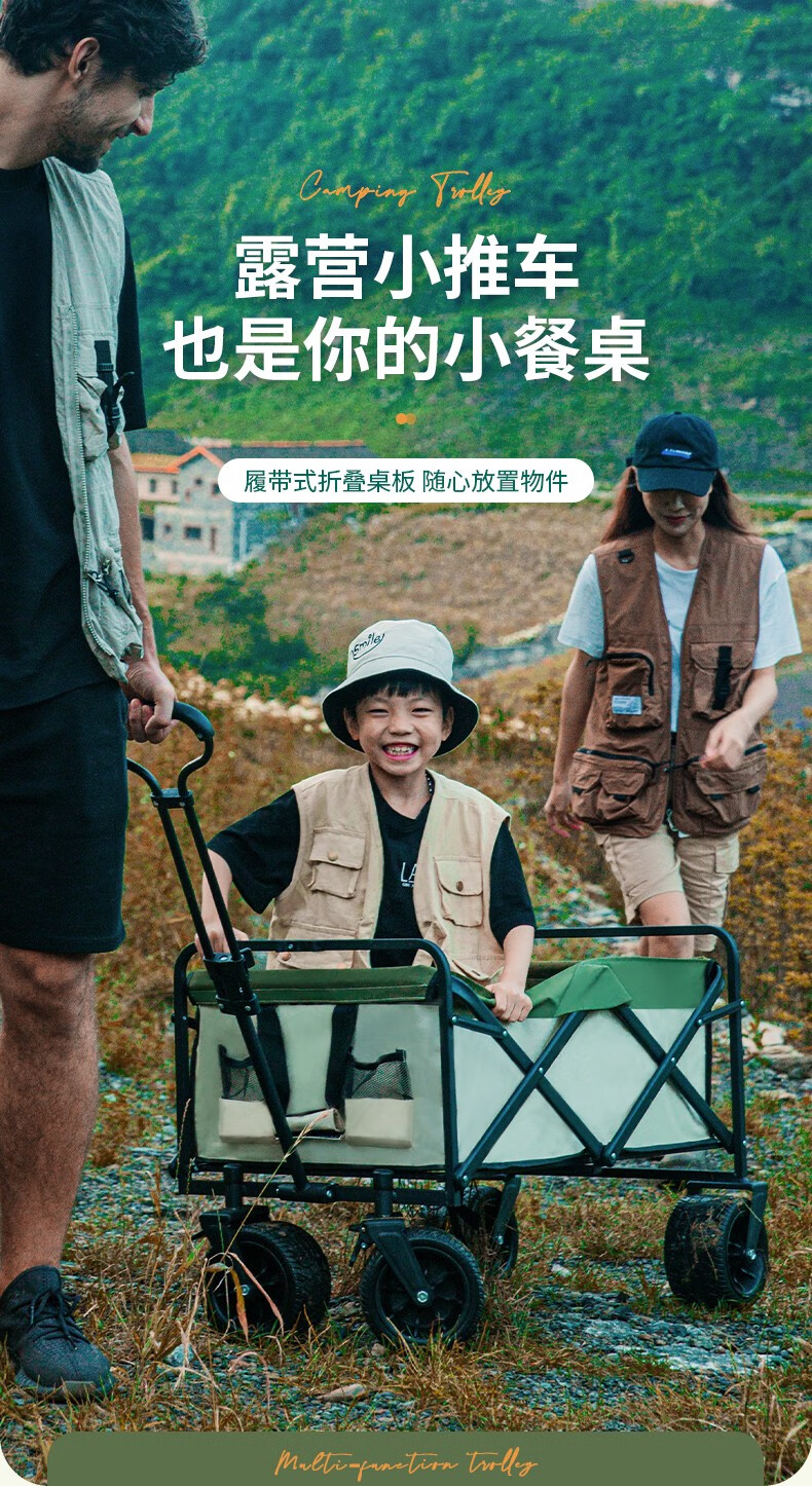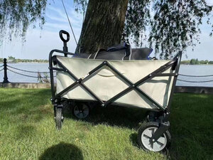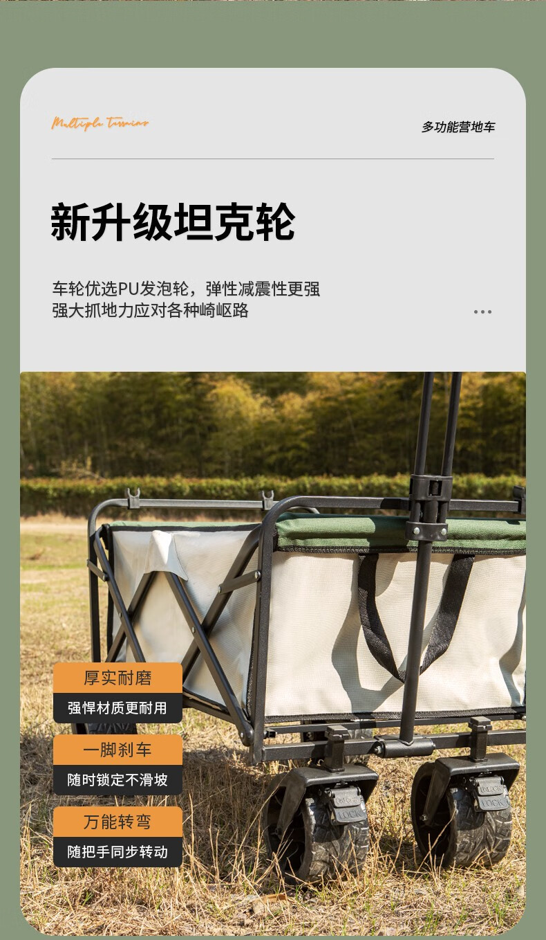 车子非常结实耐用,出去露营了三次,真是非常方便,小沟小坑都不在话下,通过性非常好,装了一堆东西也能轻松的拖动,展开和收纳都是一秒解决,平时拉个快递和购物也十分方便!