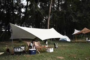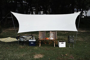迈牛黑胶天幕露营车营地拖车可以折叠移动户外摆摊遮阳伞手拉车二合一 3.3米折叠天幕银灰色不含车