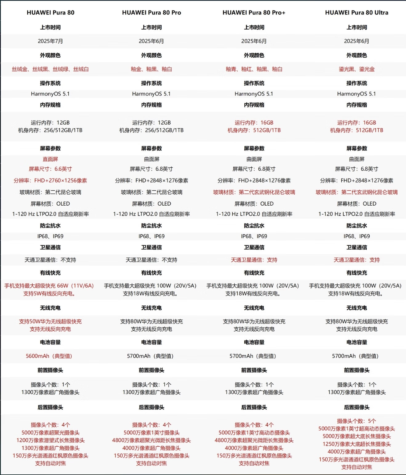 AI大模型,卫星通话,轻薄,LTPO屏幕,高频PWM调光,全焦段影像,潜望式长焦,防水防尘,无线充电,NFC,红外遥控,大底主摄,等深微曲屏