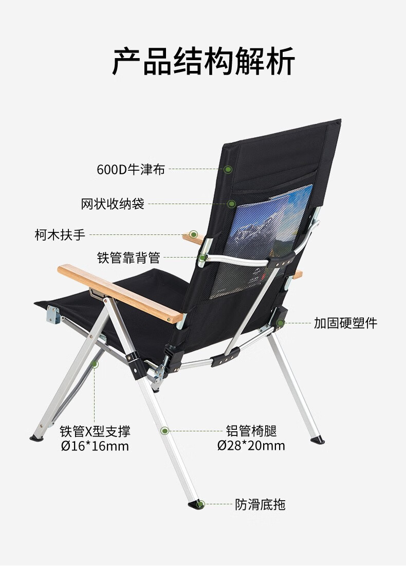 Naturehike挪客便携折叠月亮椅 户外露营休闲办公超轻铝合金钓鱼导演沙滩椅 黑色