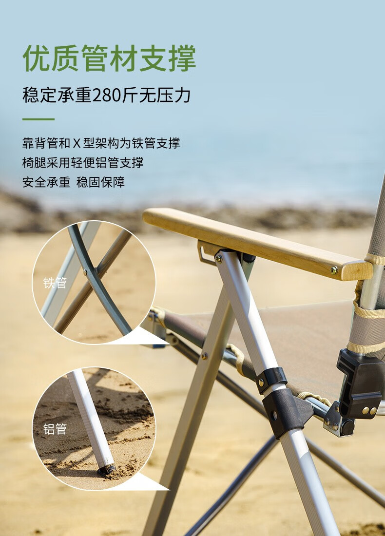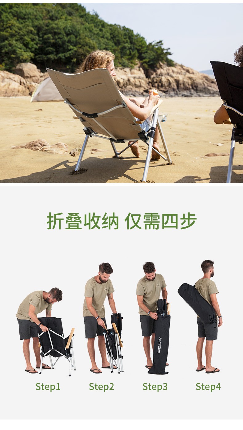 Naturehike挪客 户外折叠躺椅 午休轻便沙滩休闲椅露营钓鱼写生铝合金靠背椅 卡其色