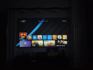 买来看电视的,联网后直接遥控操作就可以调节电视台了,挺方便的没有别的投影仪那么复杂,页面也简单。也可以手机直接投屏,画质看着还不错,音量也够大。随便一面墙就能看,还能挪动,很轻巧,很中意!