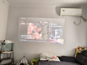 白天拉窗帘无幕布效果,晚上应该更好点。音效也不错,开机也挺快,主要我比较信这个牌子