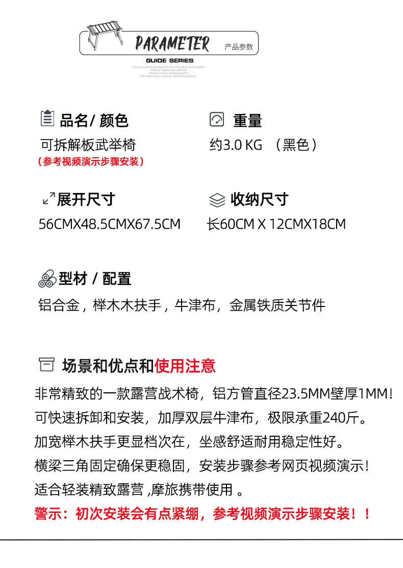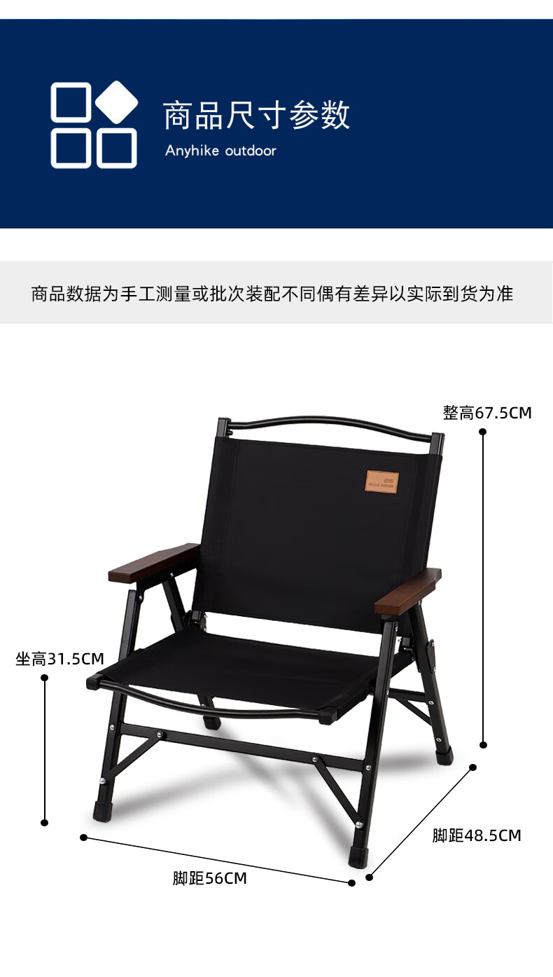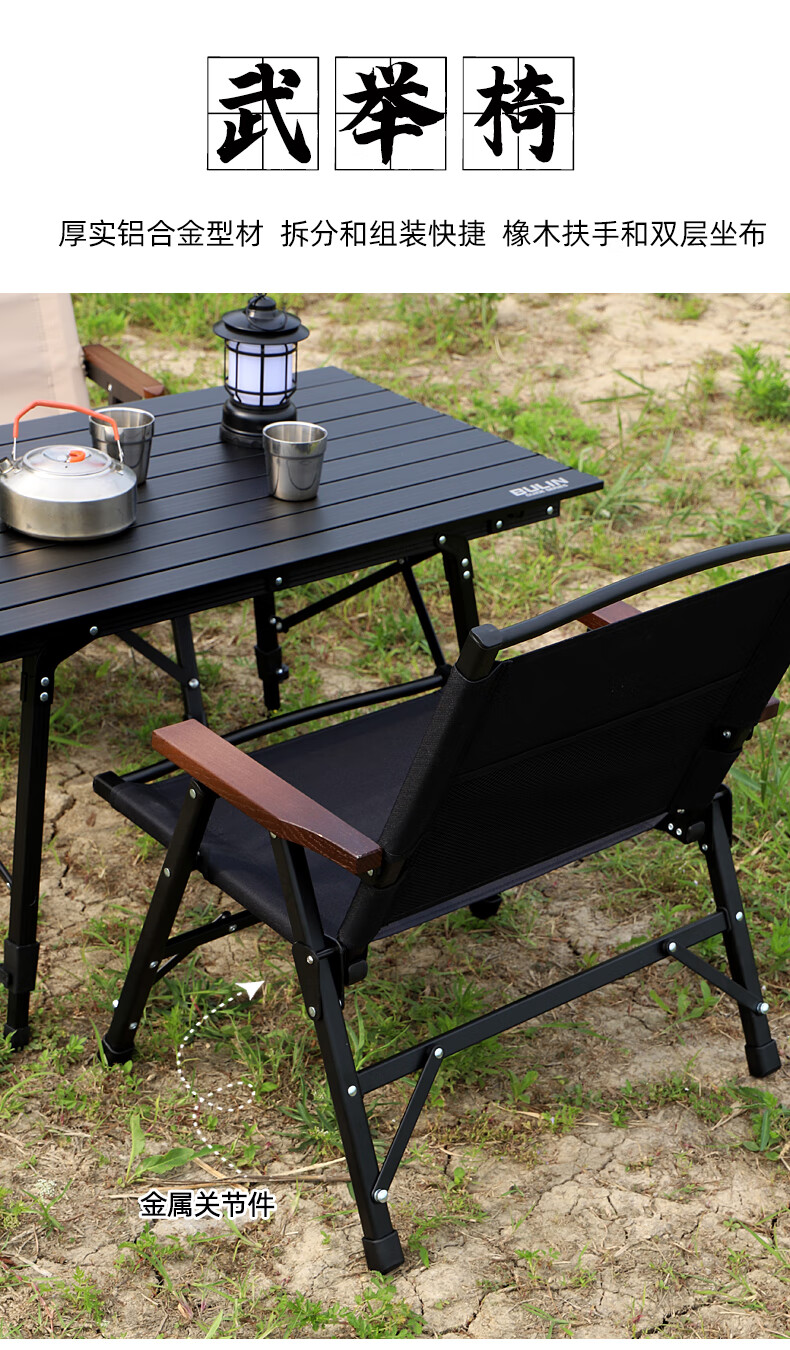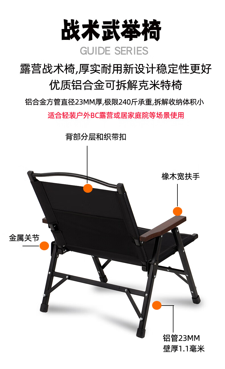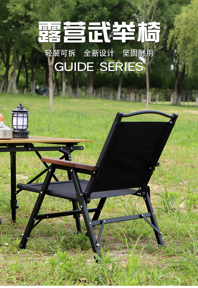 Guide Series 可拆卸克米特折叠椅户外便携铝合金露营椅沙滩靠背椅庭院折叠椅 步林G903款黑色 武举椅