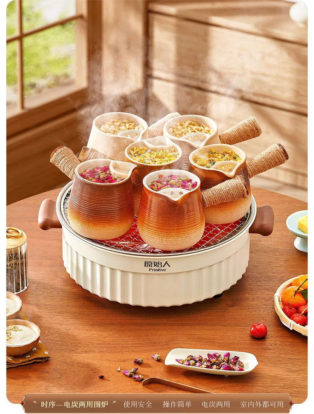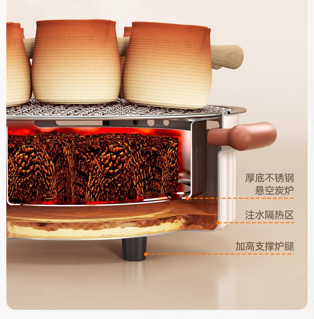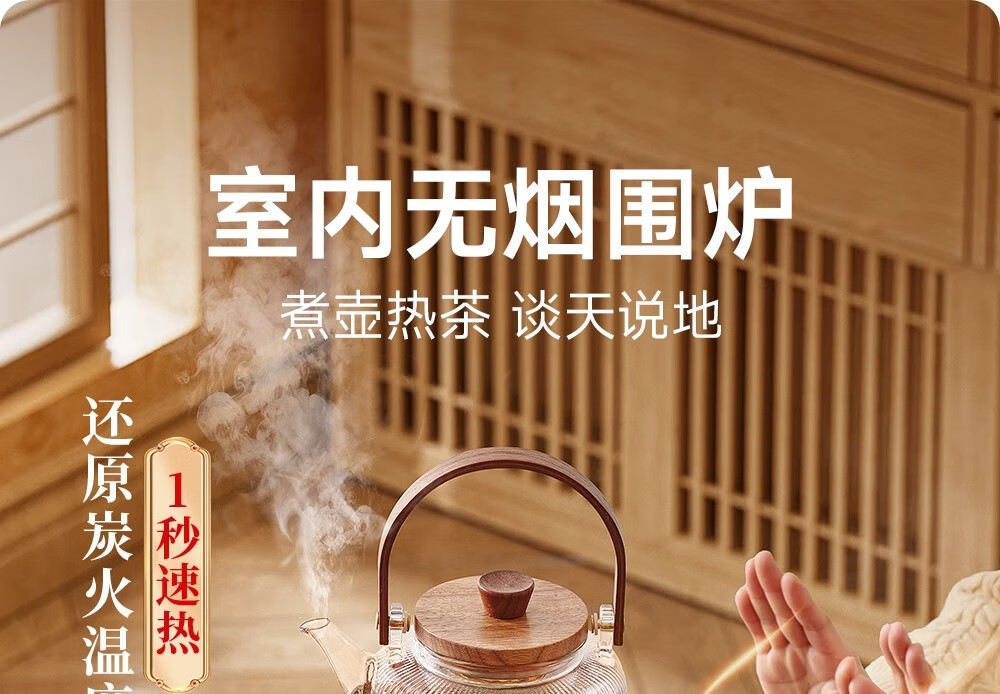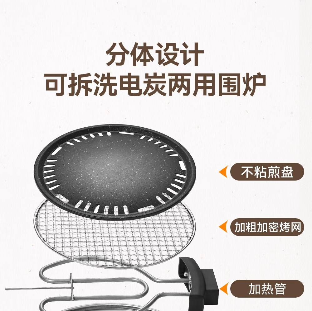 围炉设计独特既美观又实用,煮茶过程简单方便。操作界面简洁易懂,让人一用就会。功能设计齐全,可以电烤,也可以碳烤。这个发热管和电源线可以分开的清洗非常方便。非常适合家庭、办公室等场所使用。强烈推荐!