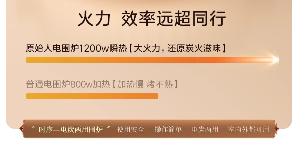 这次买回来没有翻车,比我之前买的烤炉好用多了,而且烧烤的热度也很快就热起来了,都不用一直等着,接上电源在户外一下就有的吃了。整体感觉很好,反正用起来很快就烤熟了,很满意原始人家的产品,推荐购买