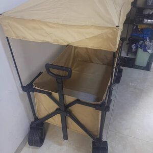 露营车收到了,非常方便,加了遮阳棚之后小孩可以坐在里面,不被太阳晒,宝贝睡着了躺在里面拉着可太方便了,陆续买了好多露营装备,装在露营车里完全没问题