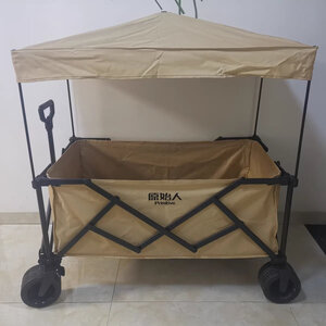 原始人露营推车户外营地拖车超大可折叠手推野餐野营手拉车顶棚 卡其顶棚(只含顶棚推车只展示)