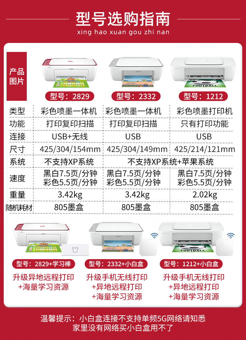 惠普(HP)1212/2332/2829彩色打印机学生无线家用办公复印扫描喷墨一体机小型照片A4纸 2332+小白盒【打印/复印/扫描+手机无线打印】 套餐一(单黑色可加墨+黑色墨水3瓶+大礼包)