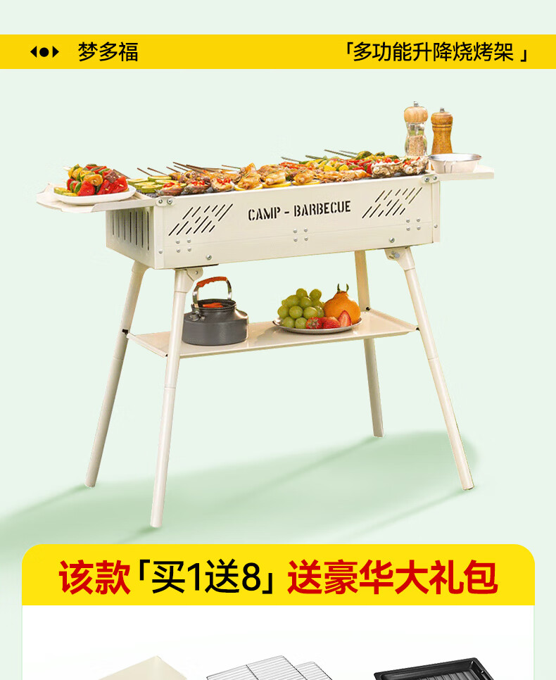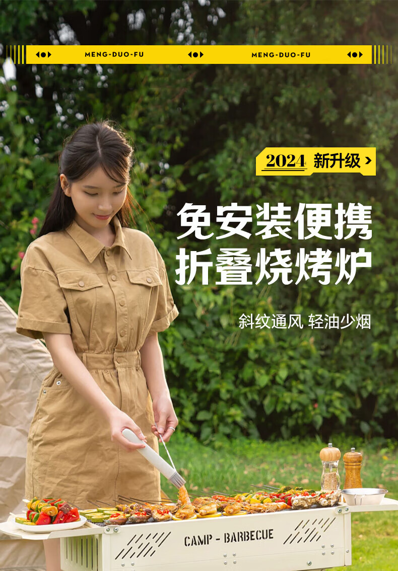 梦多福 烧烤架户外烧烤炉家用大号碳烤炉子便携式木炭烧烤工具烤肉炉 升级一体折叠炉【带收纳包】 2025新款
