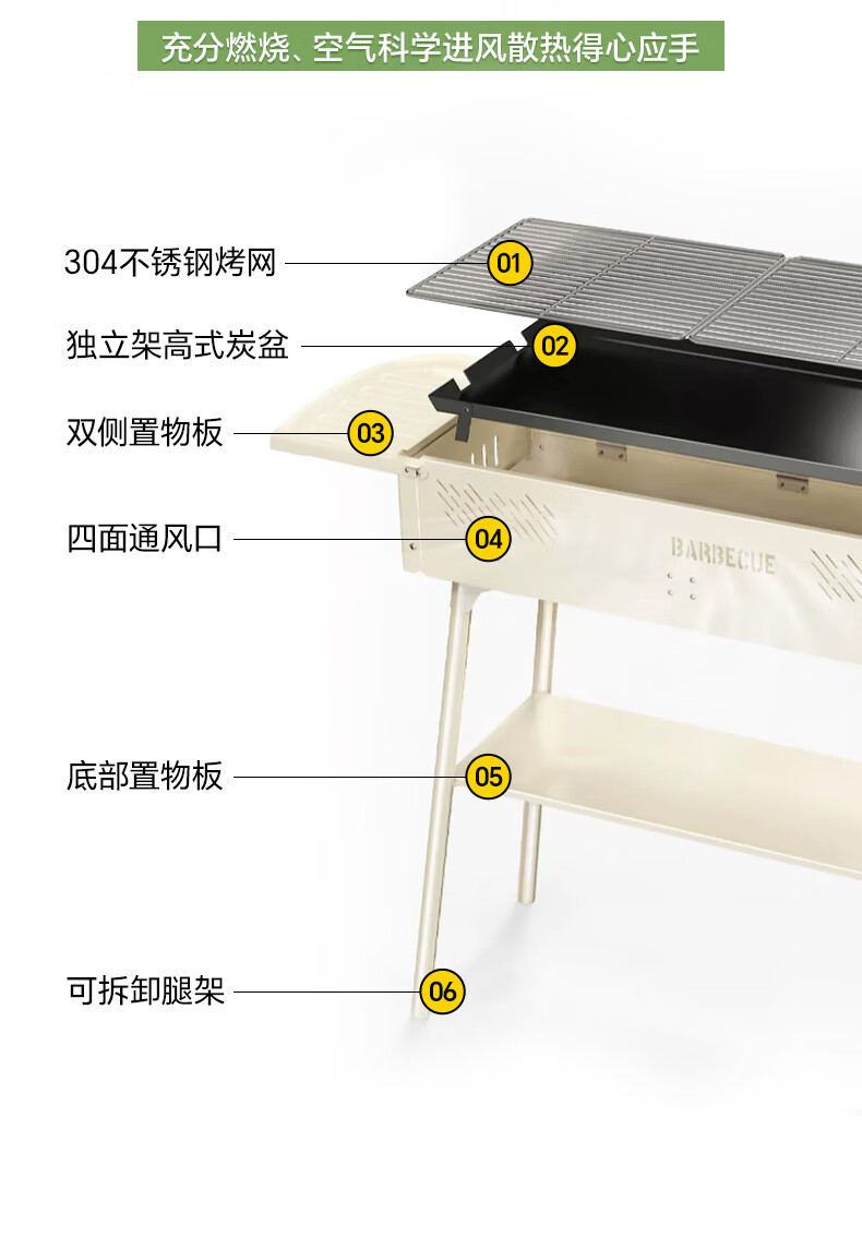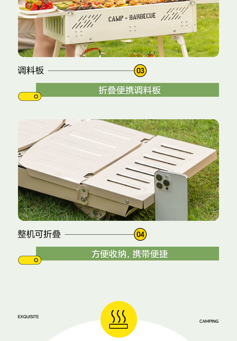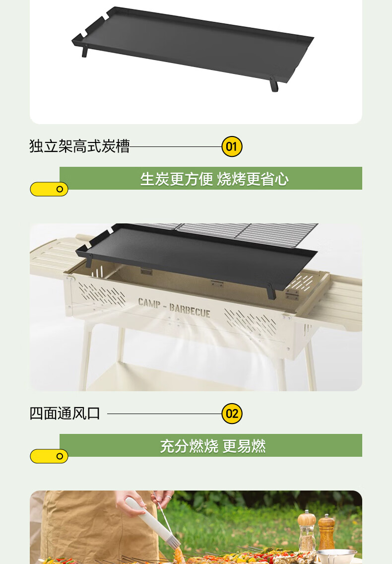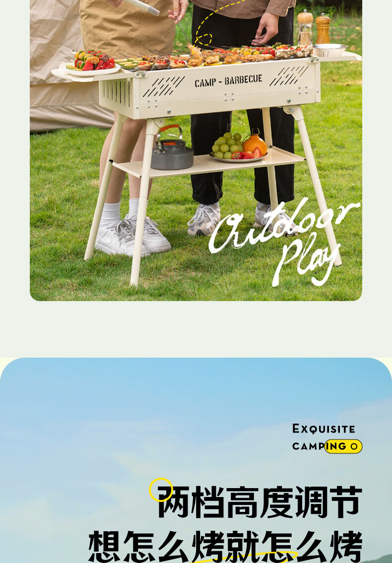 CAMELJEANS烧烤炉户外烤肉架家用炭火露营便携式碳烤烤串炉子 174BH05715