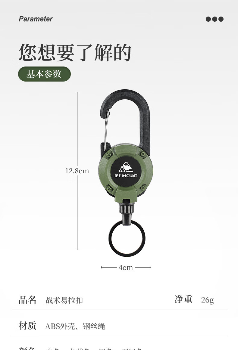 这个户外小配件真的挺值的,伸缩设计方便携带,挂钥匙再也不怕丢了。质量不错,用了一段时间也没坏,户外活动带着很省心。