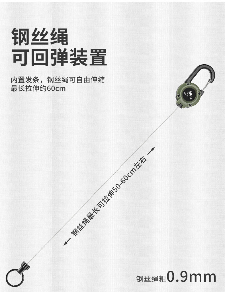 刚收到就试用了,弹性很好,挂钥匙很方便,还能当登山扣用。材质结实,伸缩设计很实用,出门带着不占地方。性价比高。