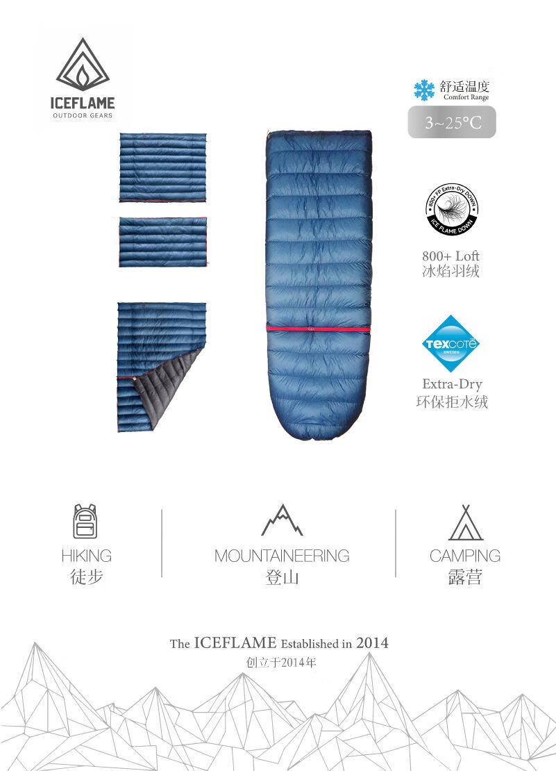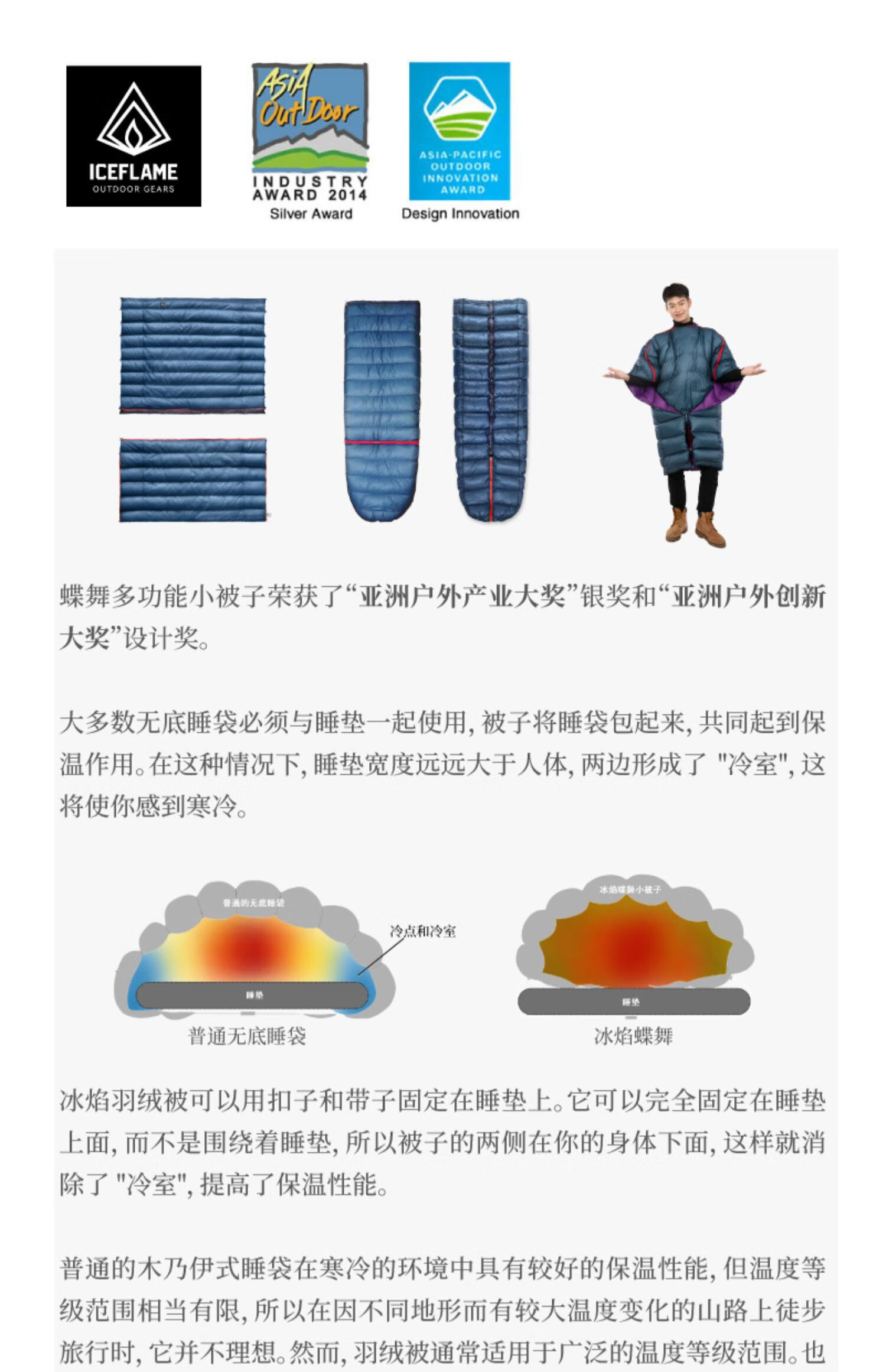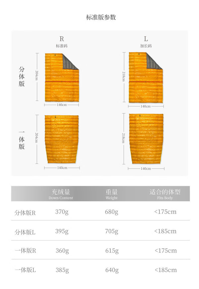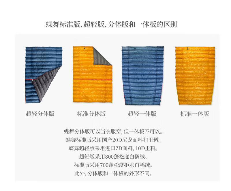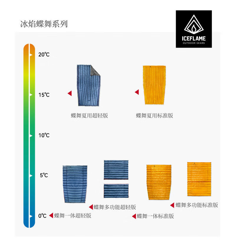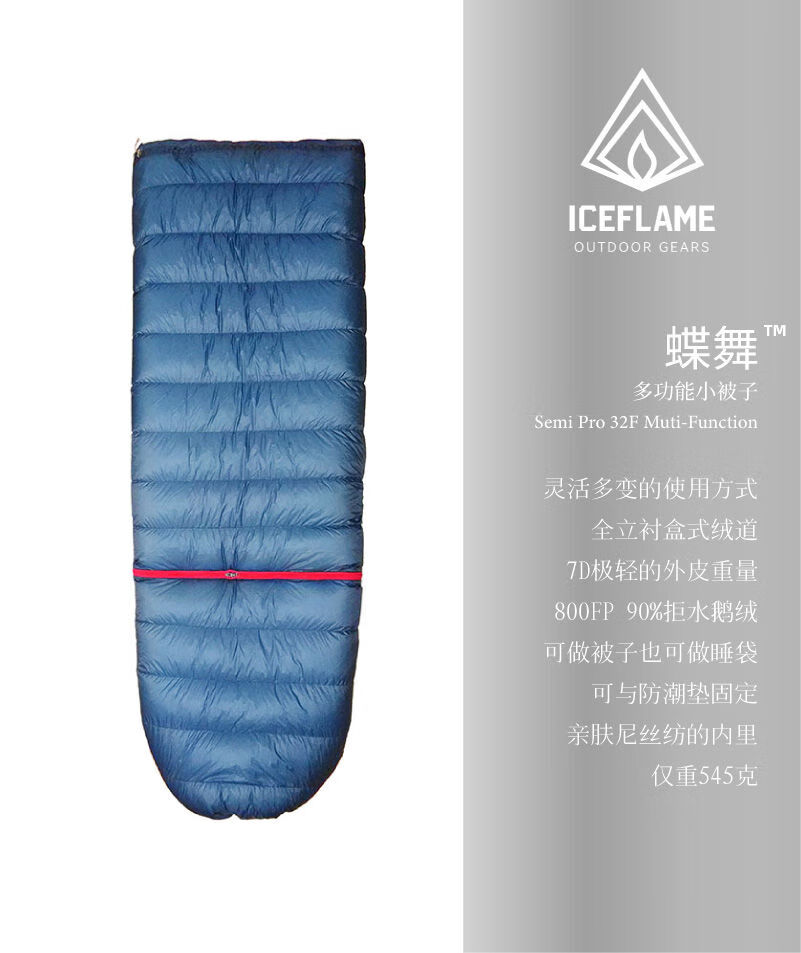 冰焰 ICE FLAME蝶舞超轻鹅绒被7D夏用无底羽绒睡袋20D拒水鸭绒 蝶舞夏用基础版小被子黄色
