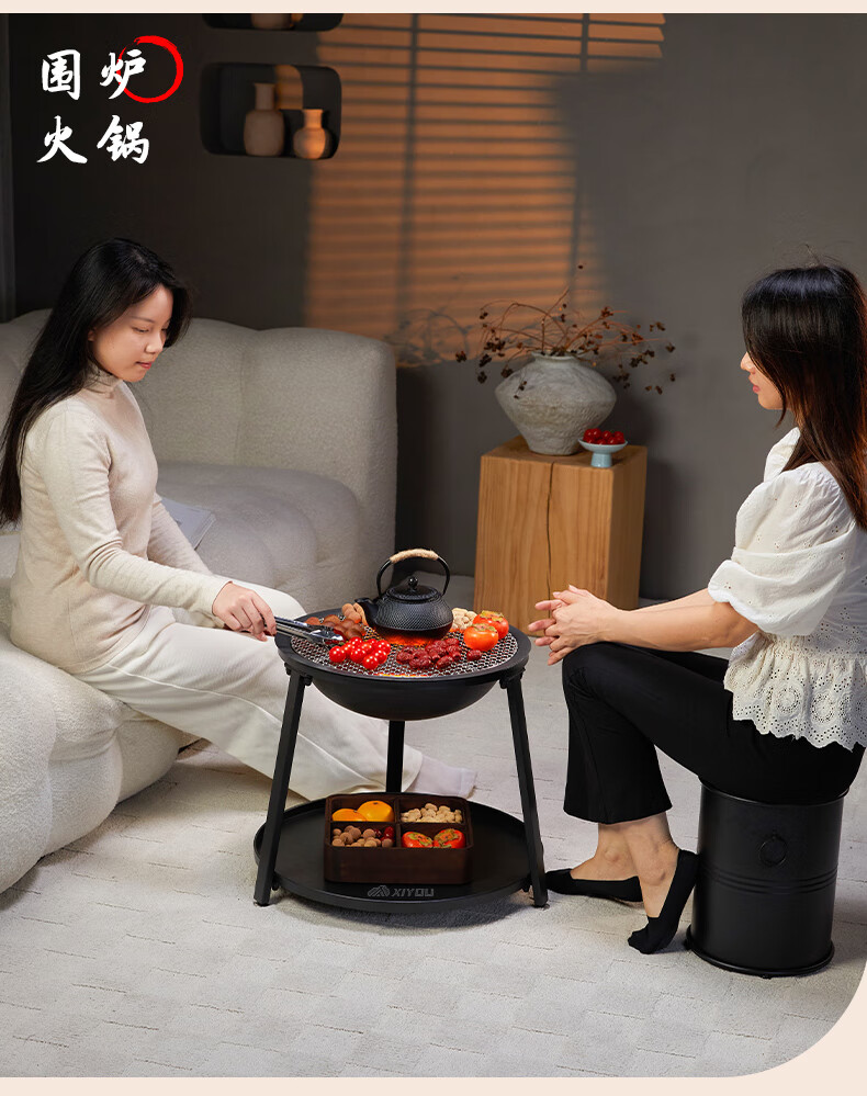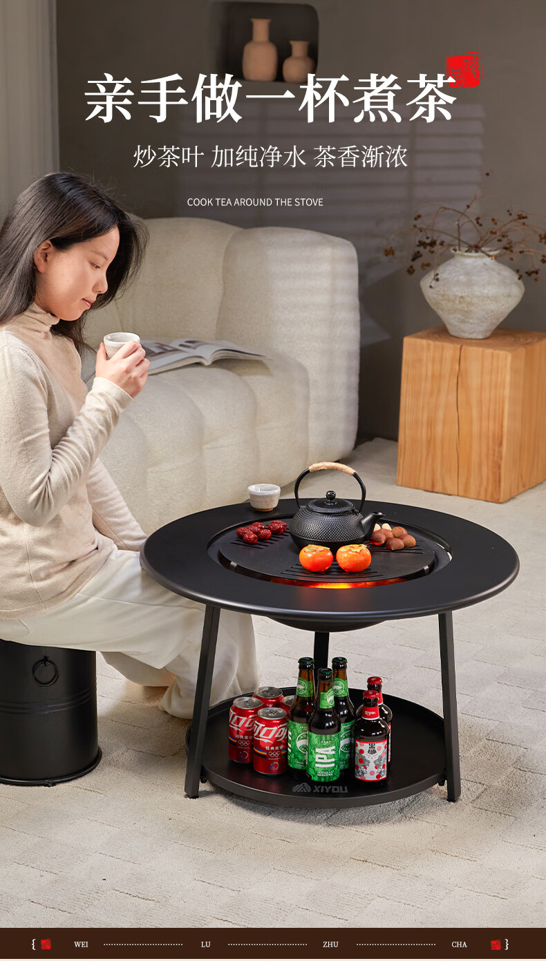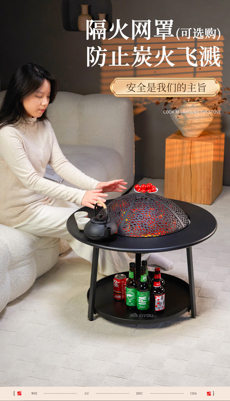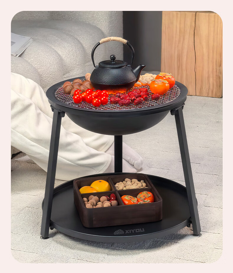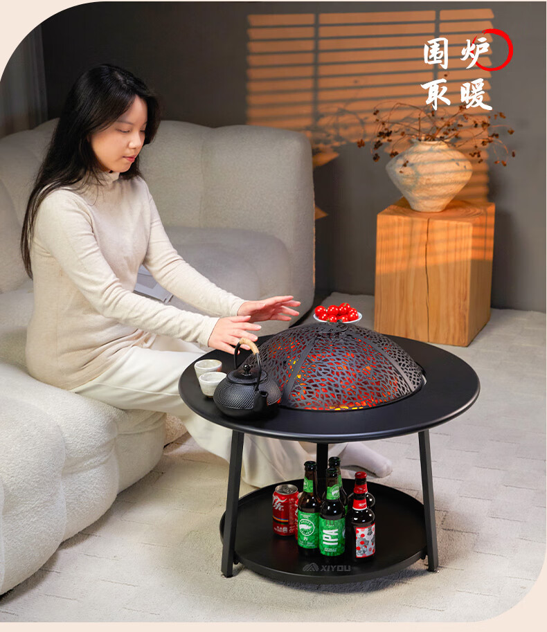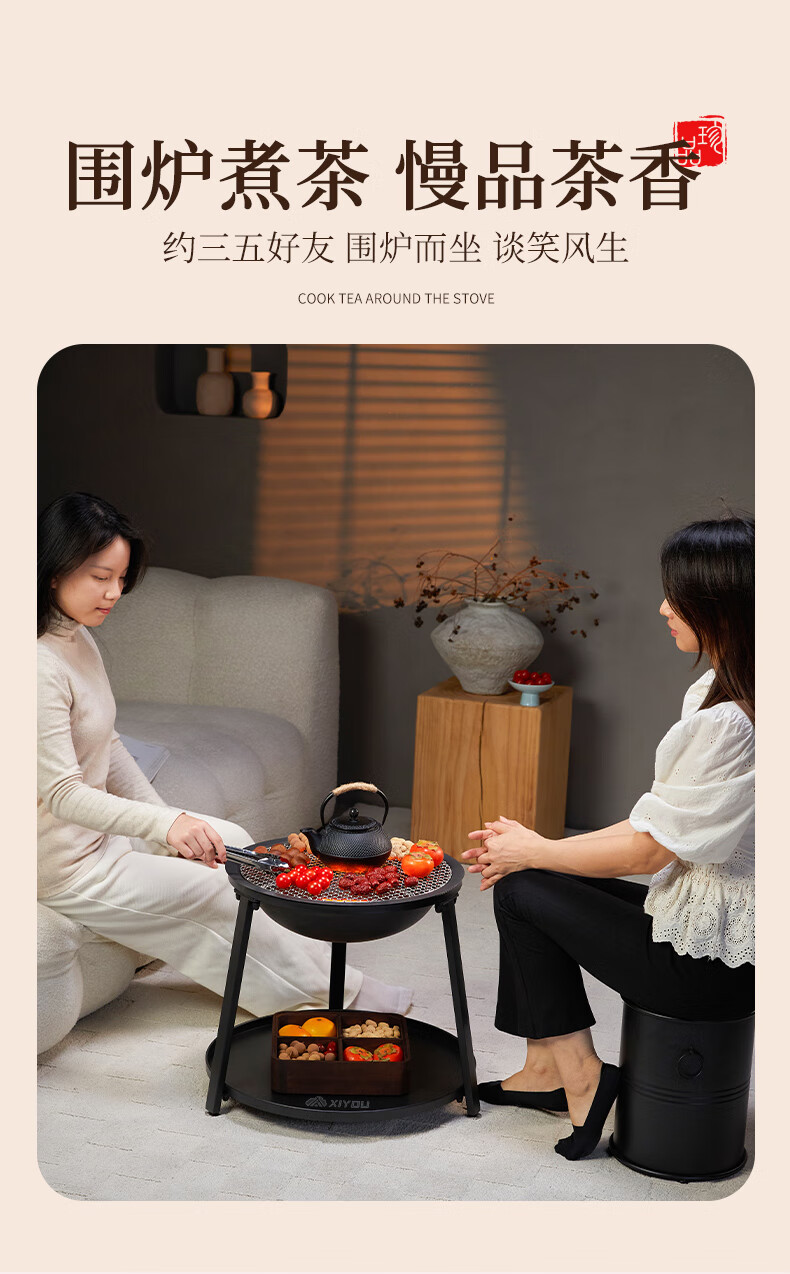 嘻由围炉煮茶烧烤炉套装多功能烤肉火炉户外庭院烧烤架家用无烟煮茶炉 【双层围炉煮茶桌标准版】