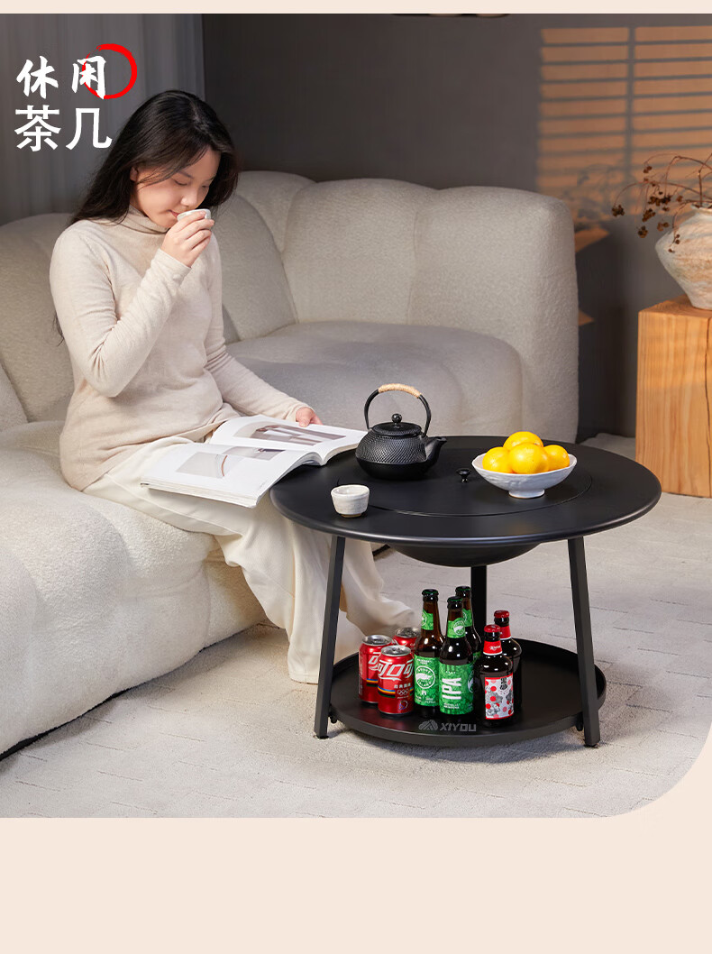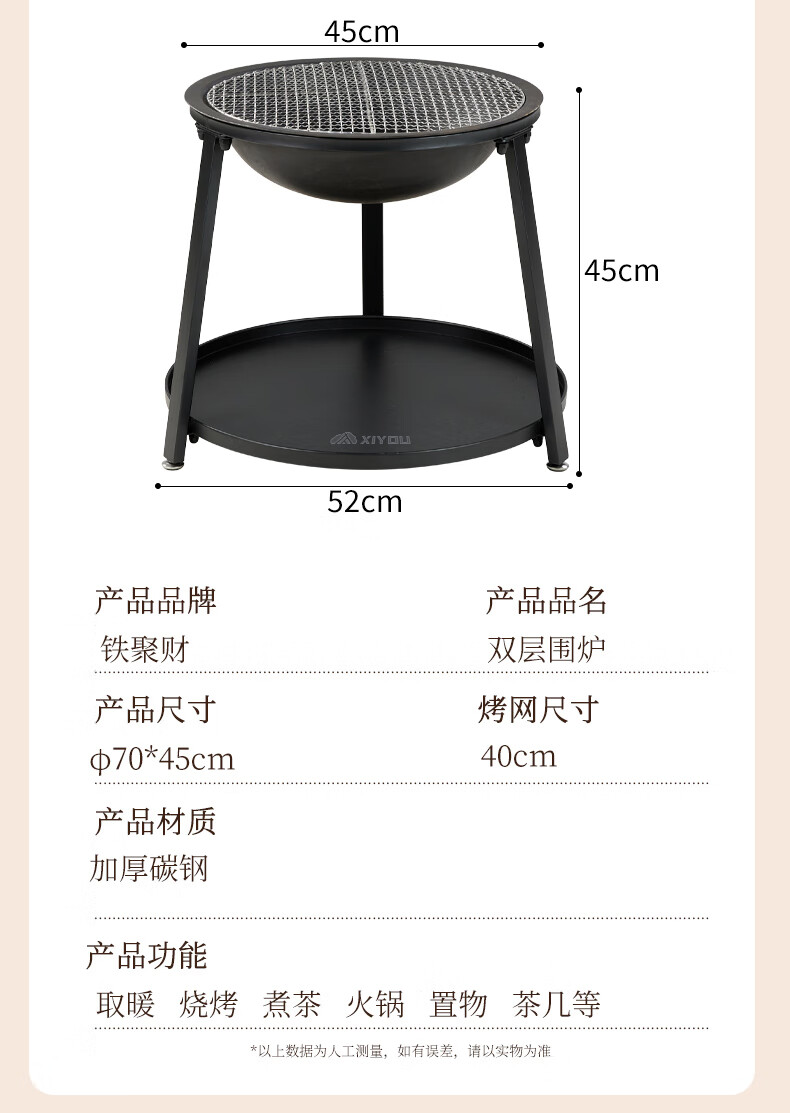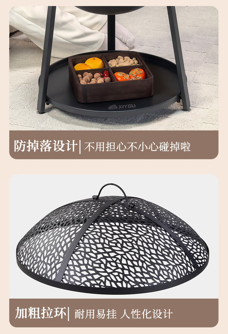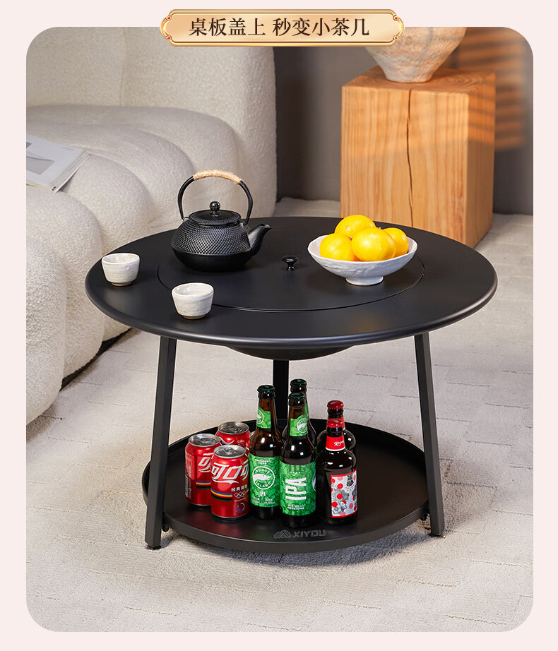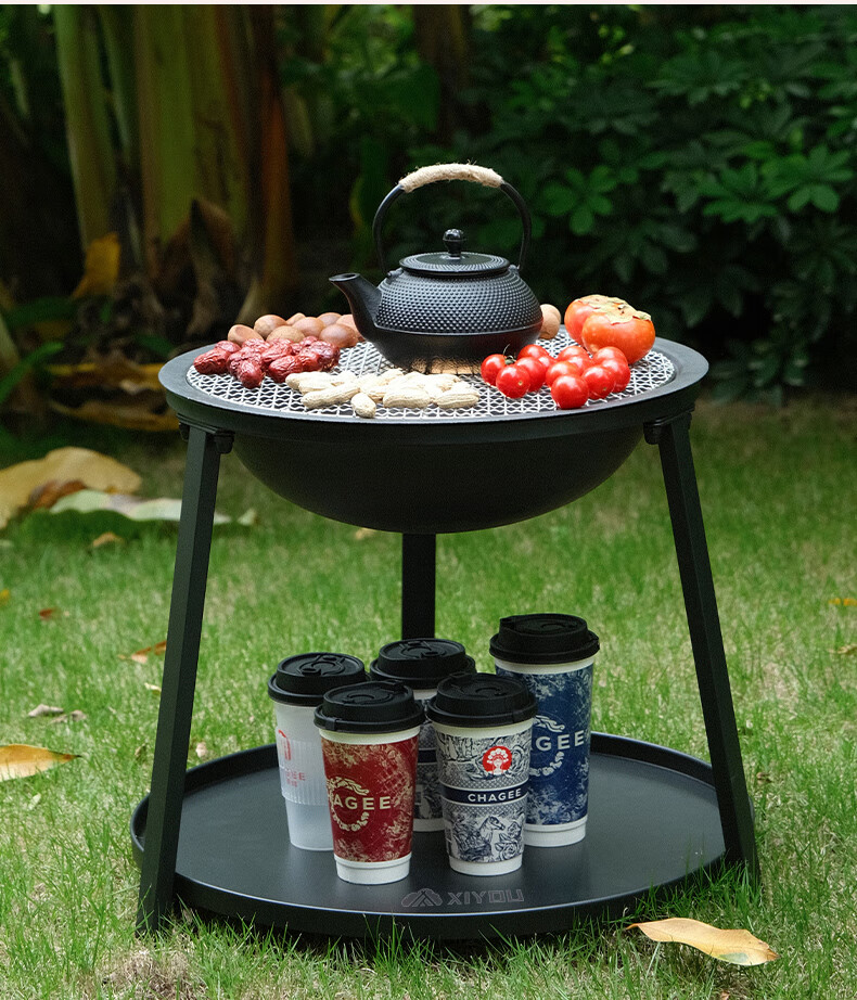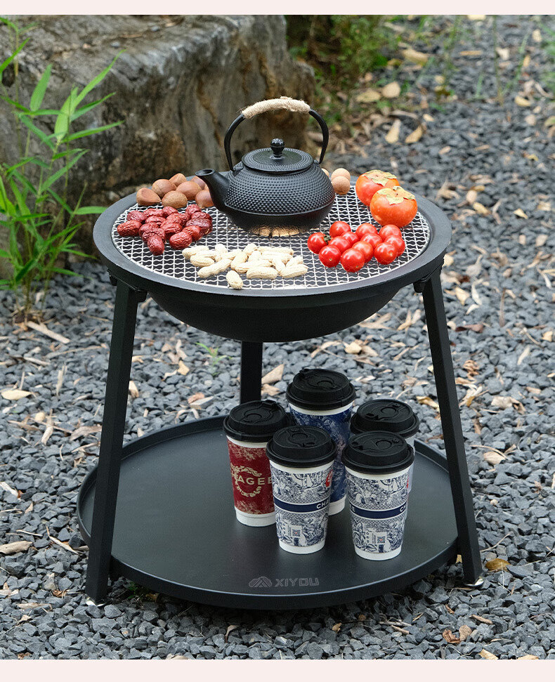 嘻由围炉煮茶烧烤炉套装多功能烤肉火炉户外庭院烧烤架家用无烟煮茶炉 【双层围炉煮茶桌标准版】
