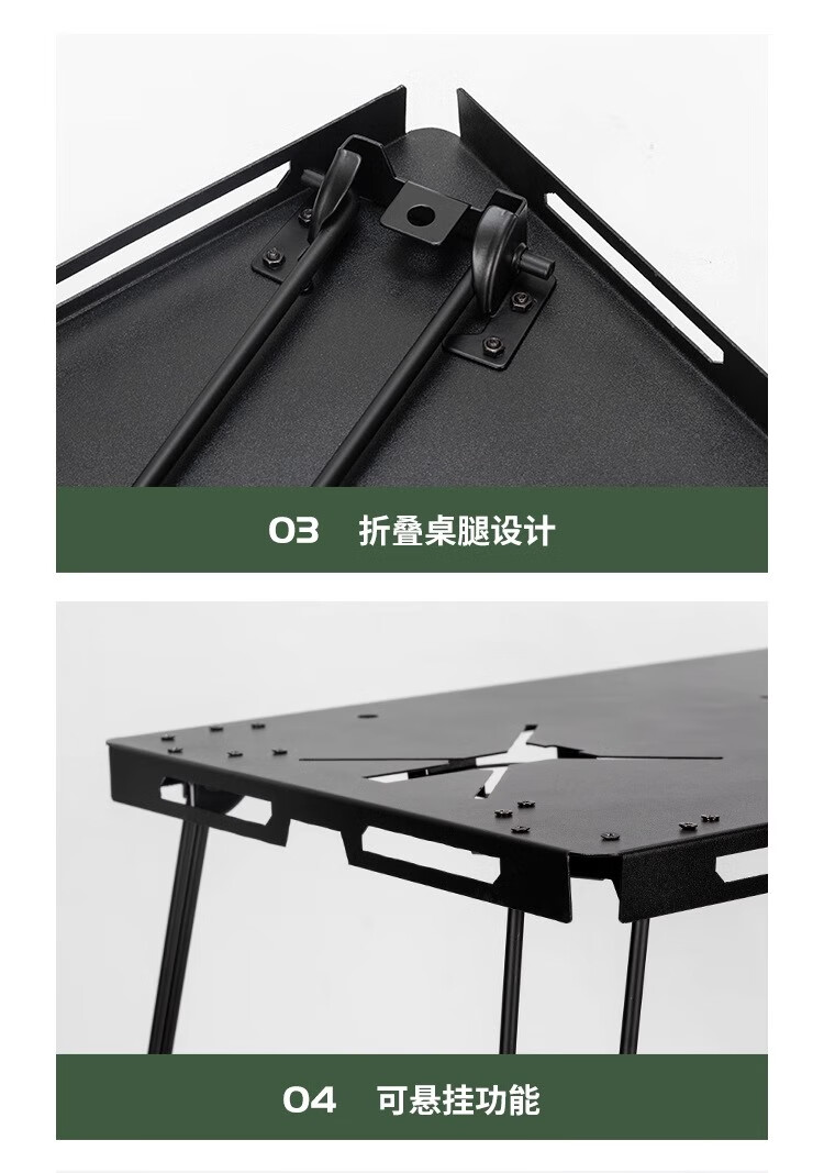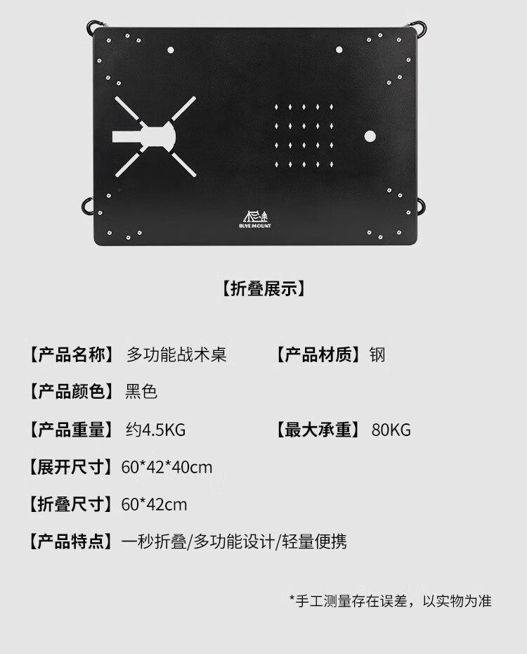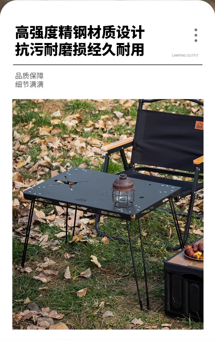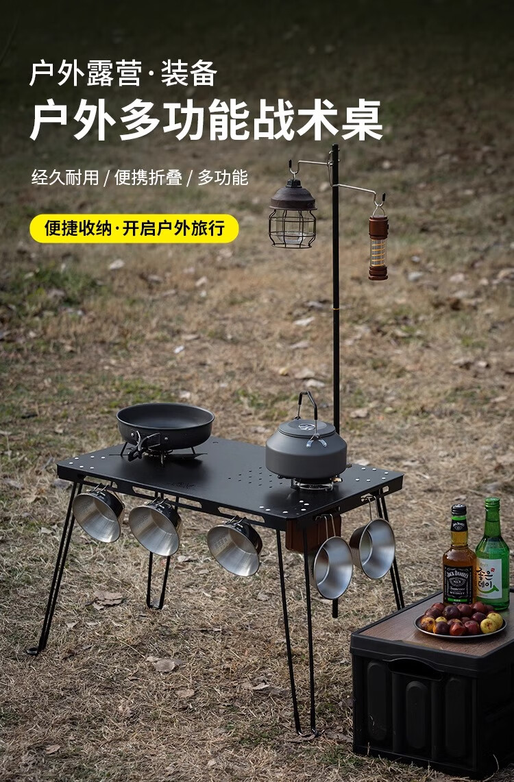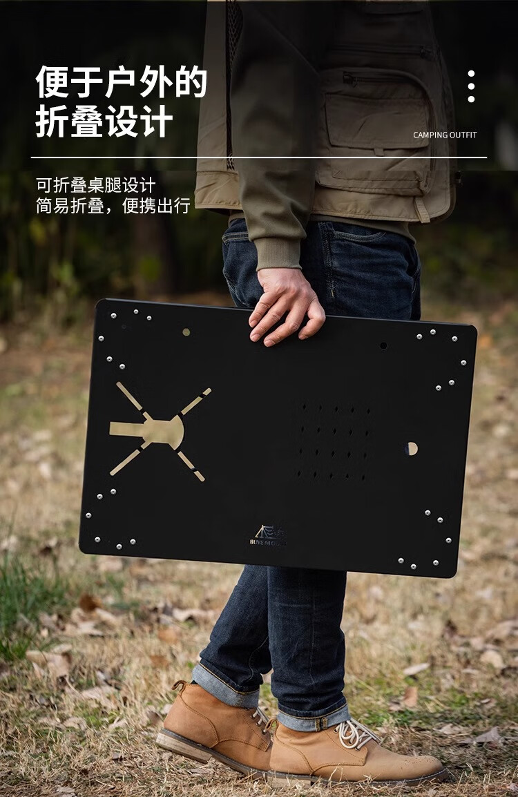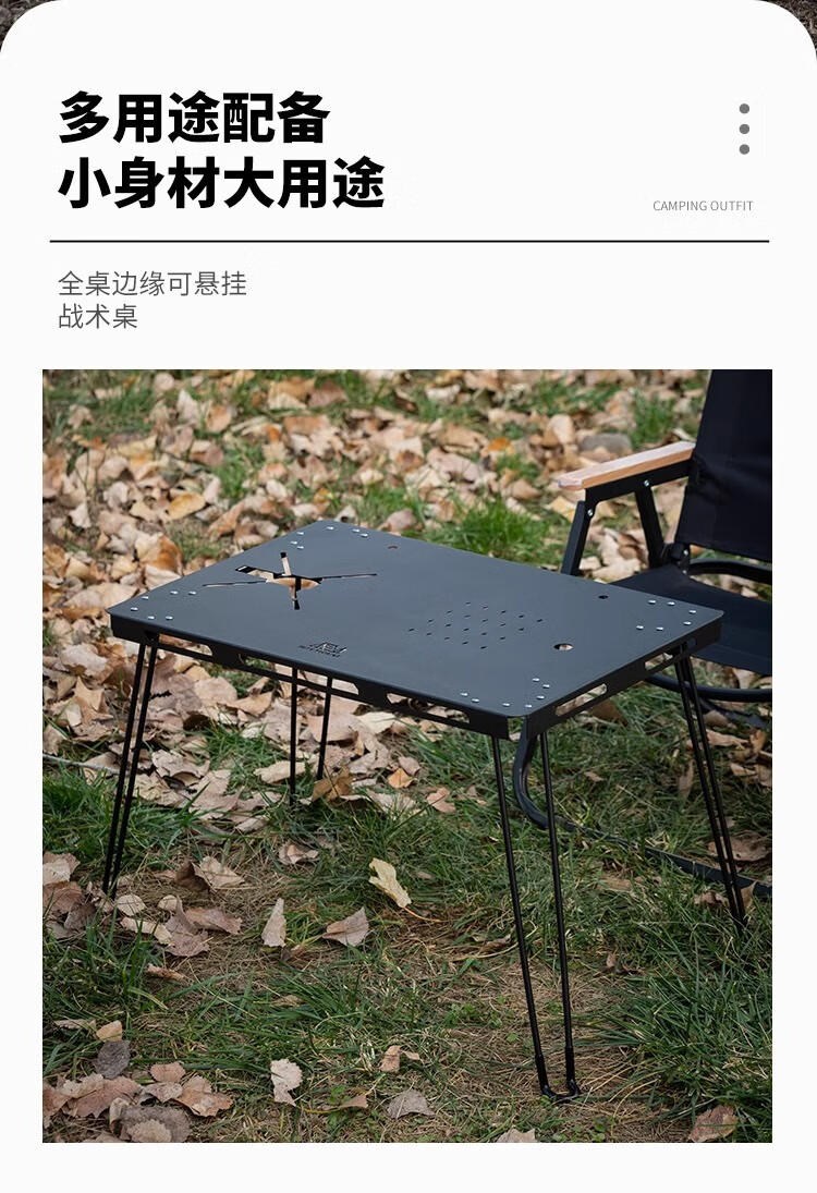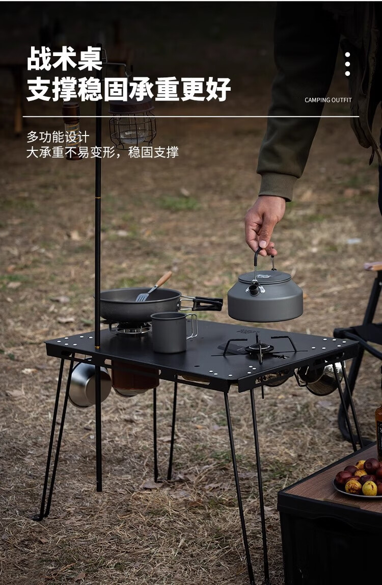 超级流浪者户外露营折叠桌子钢板蜘蛛炉战术桌便携黑化小茶桌野炊野餐方桌子 战术蜘蛛桌【黑色】