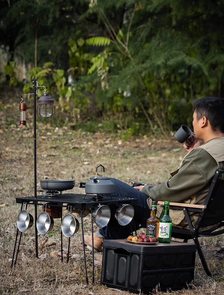 山趣(ShineTrip)咖啡箱套装配件户外露营喝茶喝咖啡精致露营黑化风 ST-05系列中号咖啡箱底桌