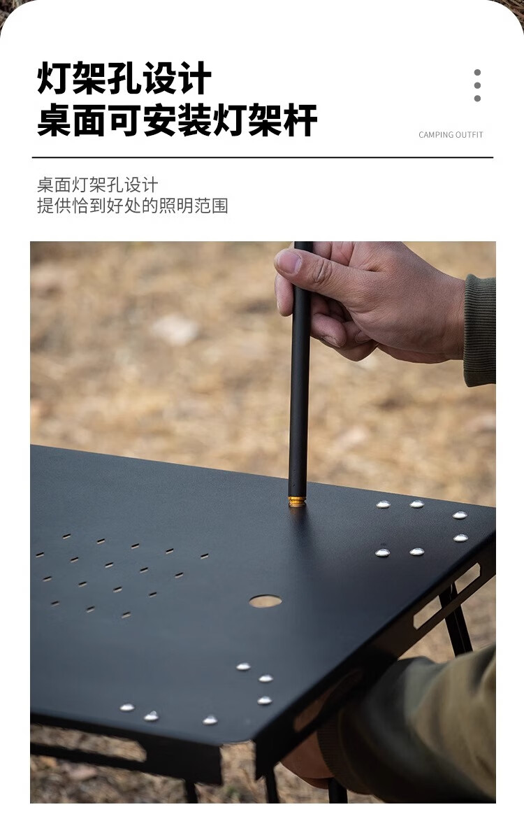 Guide Series户外铝合金折叠桌露营桌便携升降沙滩烧烤桌加宽桌自驾游车载桌 新 加宽金属 木纹黑色