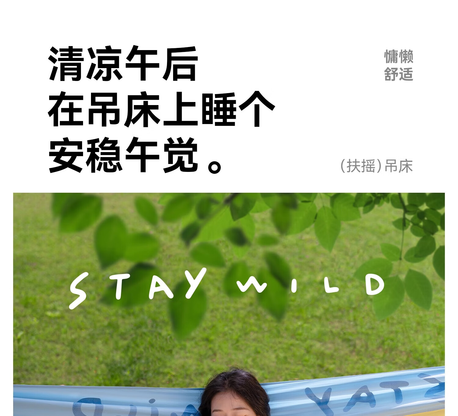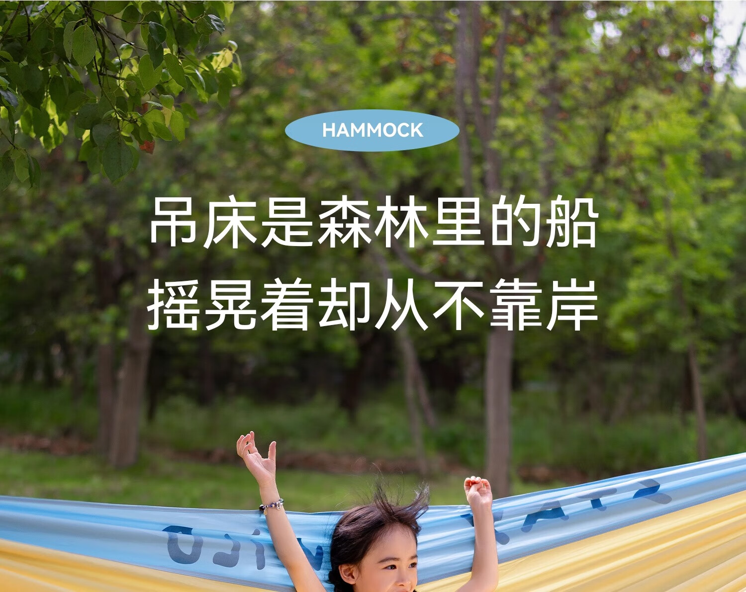 这个吊床价格很优惠,看着优惠才买的,没想到质量还挺不错的,躺在上面也很舒服,不用怕掉下来,这个周末露营用它,不仅享受了惬意的休闲时光,还成了拍照打卡的绝美道具,随手一拍都是氛围感大片。