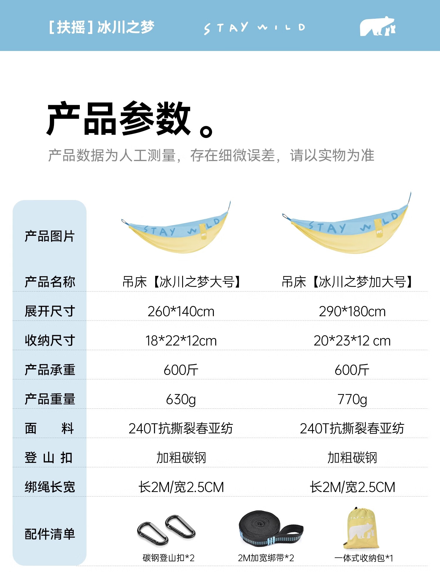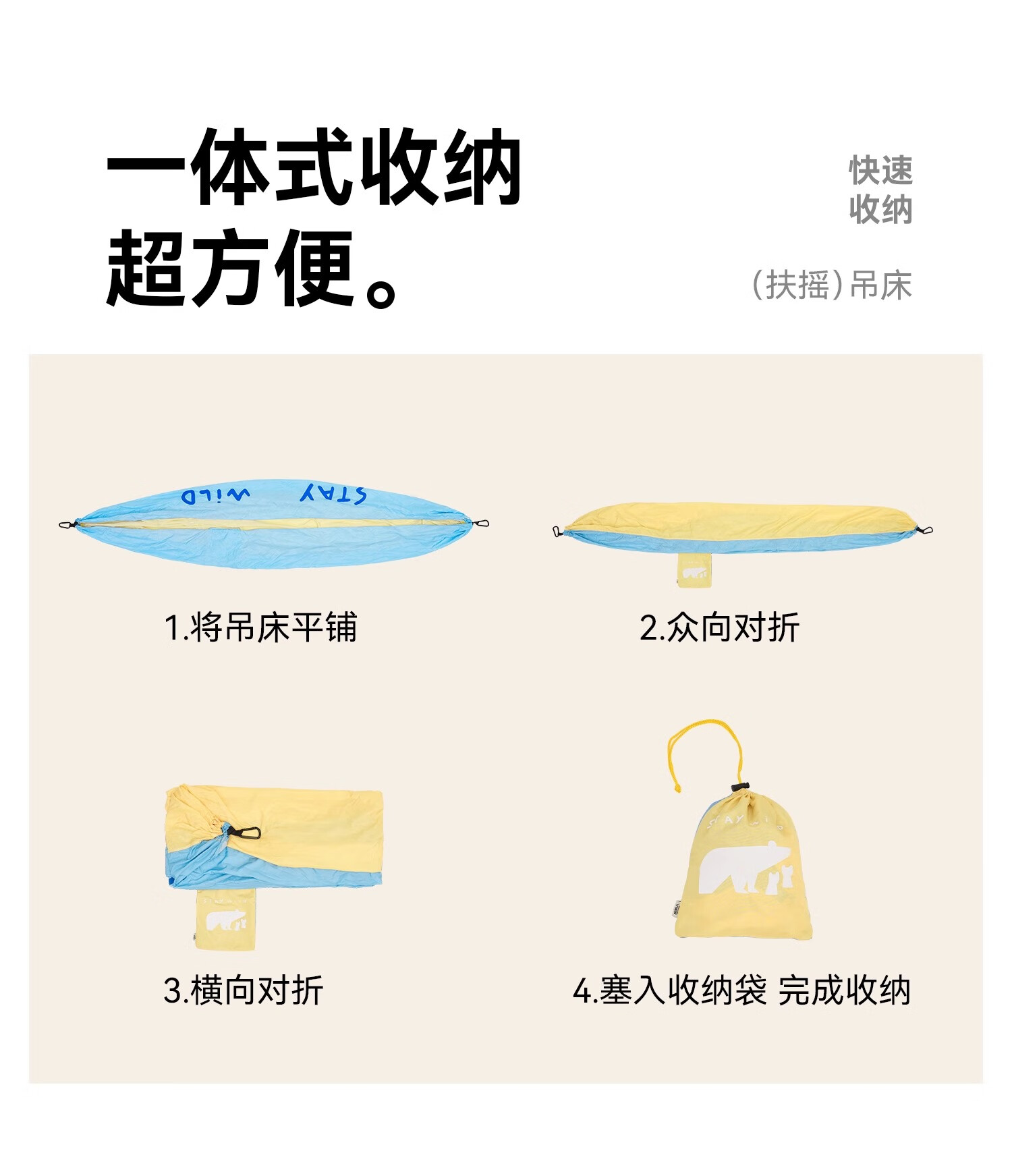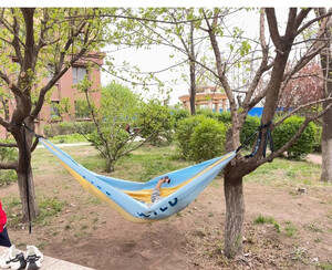 质量很好,选来选去还是这个颜色好看,周末和小朋友一起出去玩了,很结实耐用。展开后躺两人也没问题,很结实。收纳之后简直太小了吊床用料扎实,搭建方便,超级好评