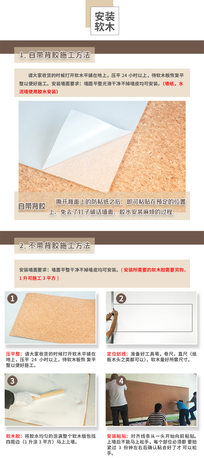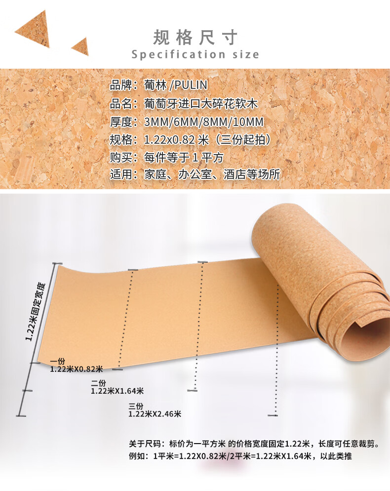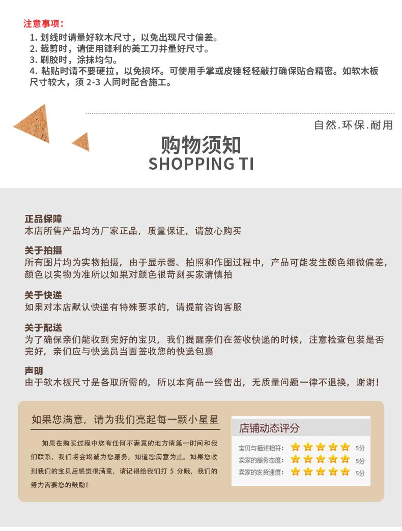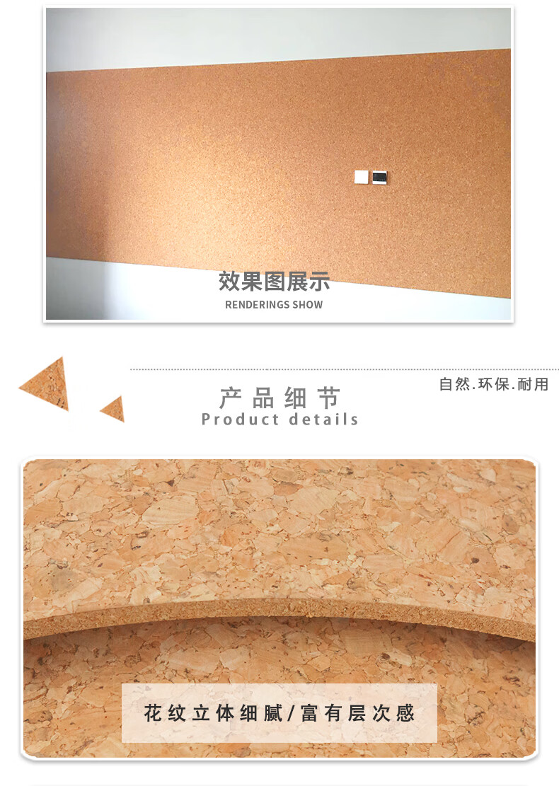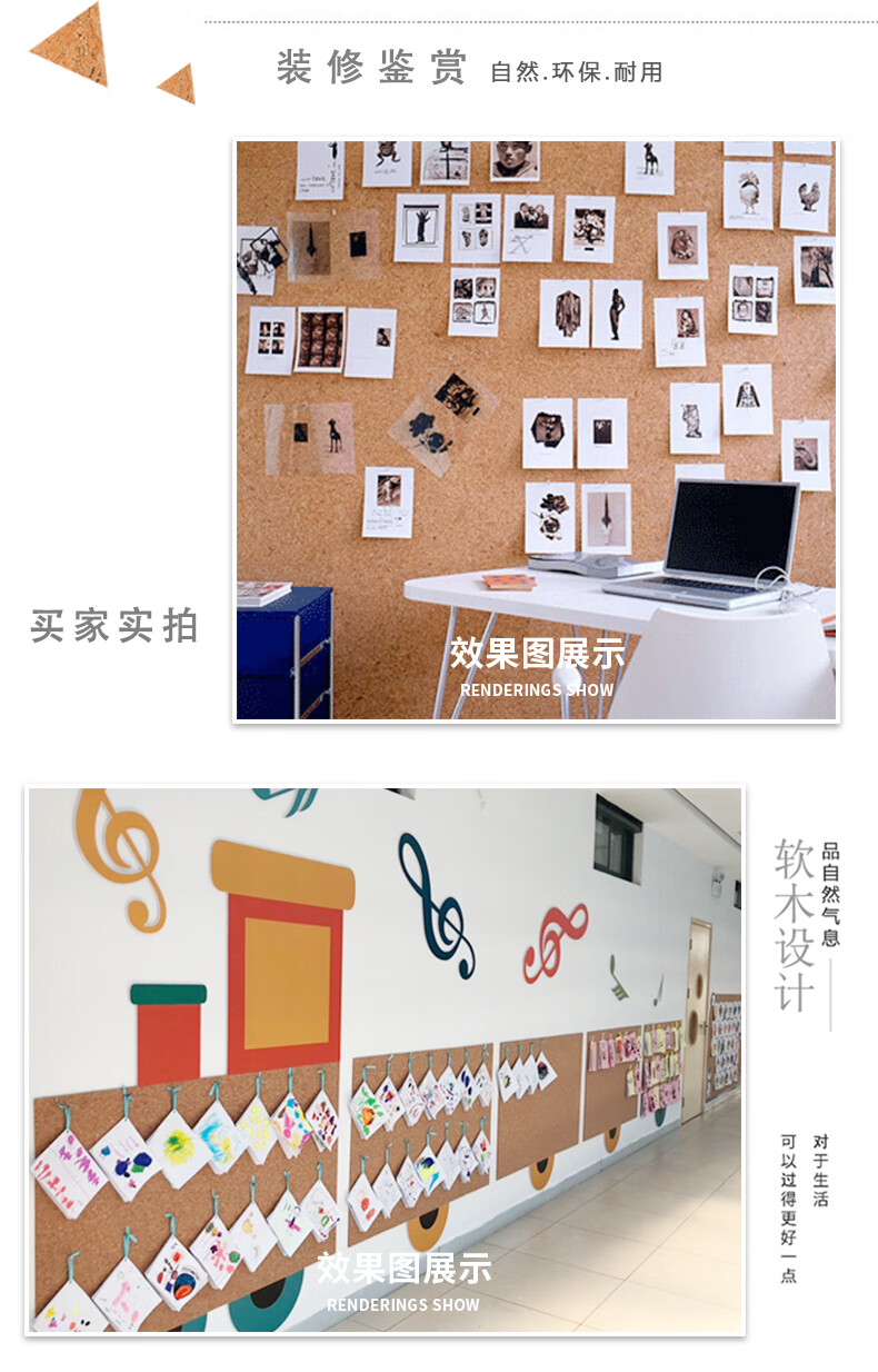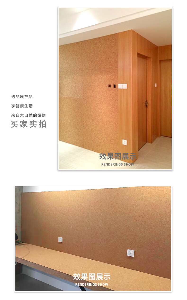 软木板质量不错,买来贴在墙上,可以吸收潮气,墙壁不会太湿产生水珠,就是如果能够灵活购买大小就更好了! 发货快速,送货积极,包装完整!购物顺畅! 如果有需要下次还会购买!