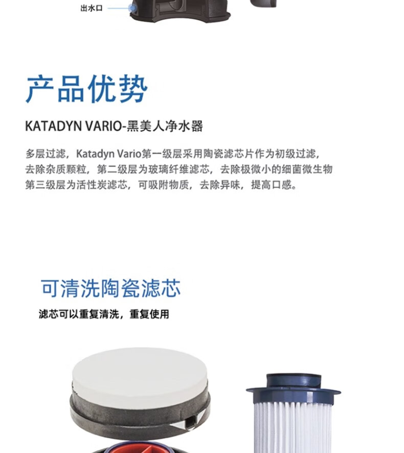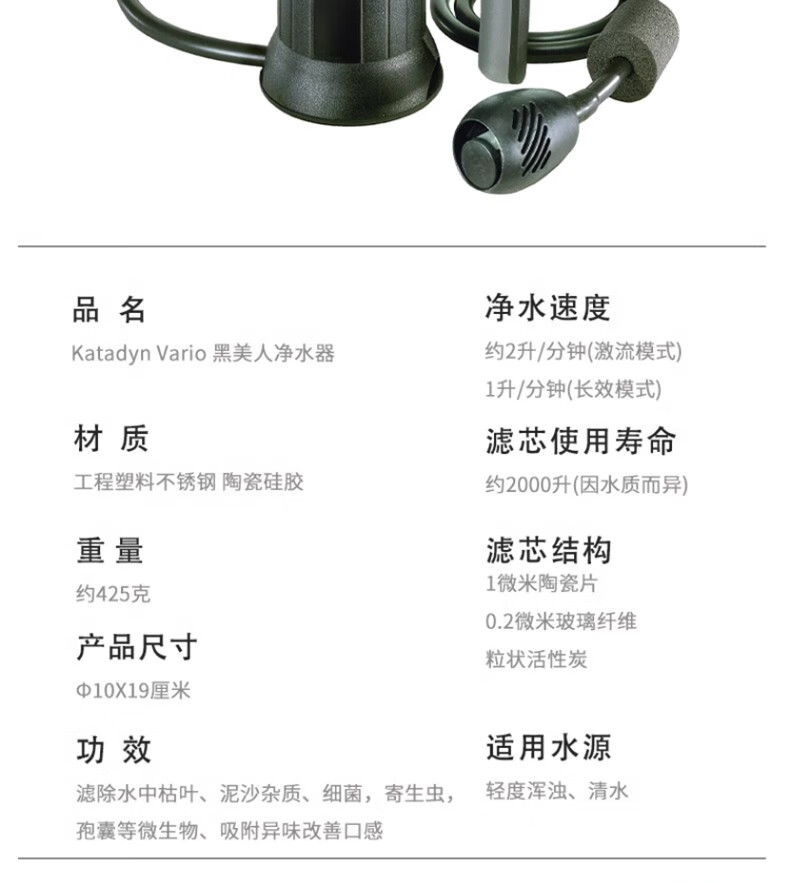 KATADYN瑞士康迪户外生存露营黑美人VARIO便携大流量净水器野外水过滤器 玻璃纤维滤芯