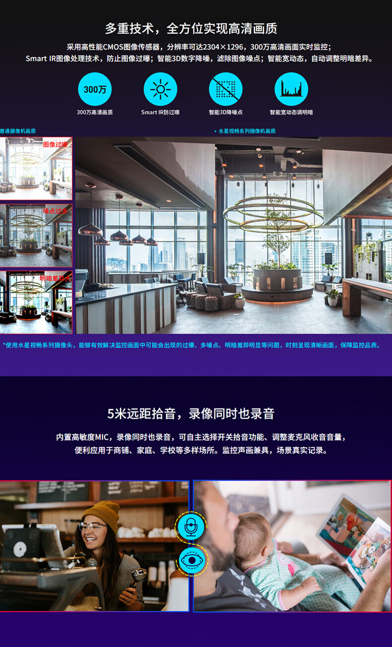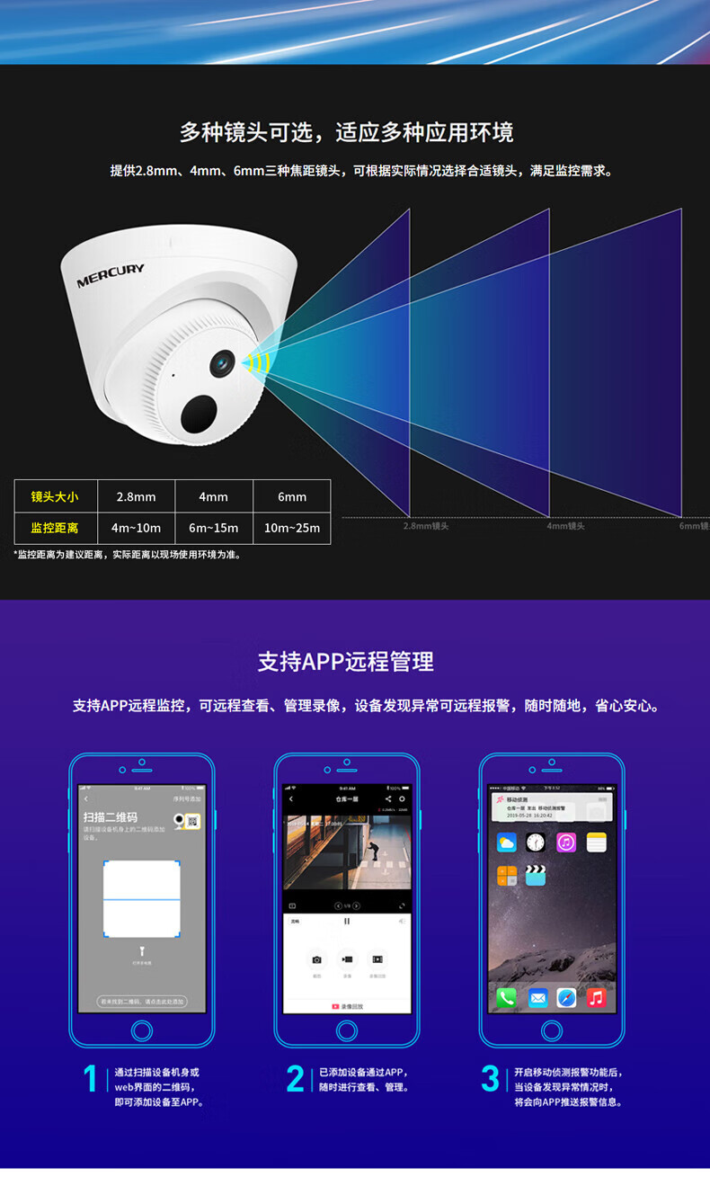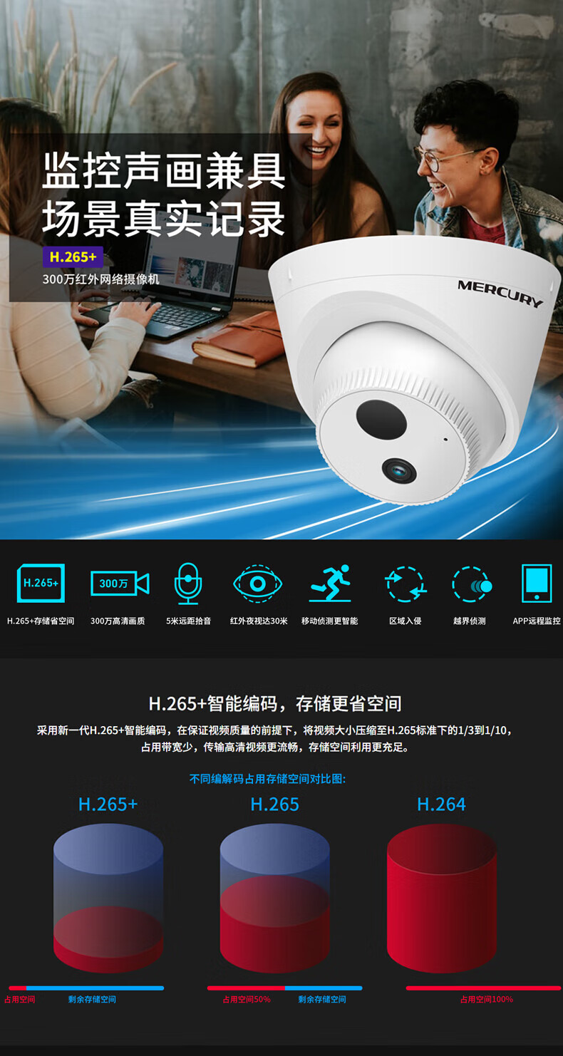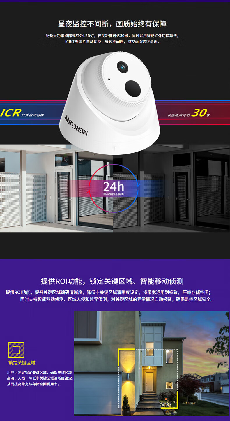 水星网络有线poe摄像头高清网络半球监控器家用商用店铺全彩夜视拾音高清 双光全彩/实时录音/仅PoE供电 4mm 400万像素