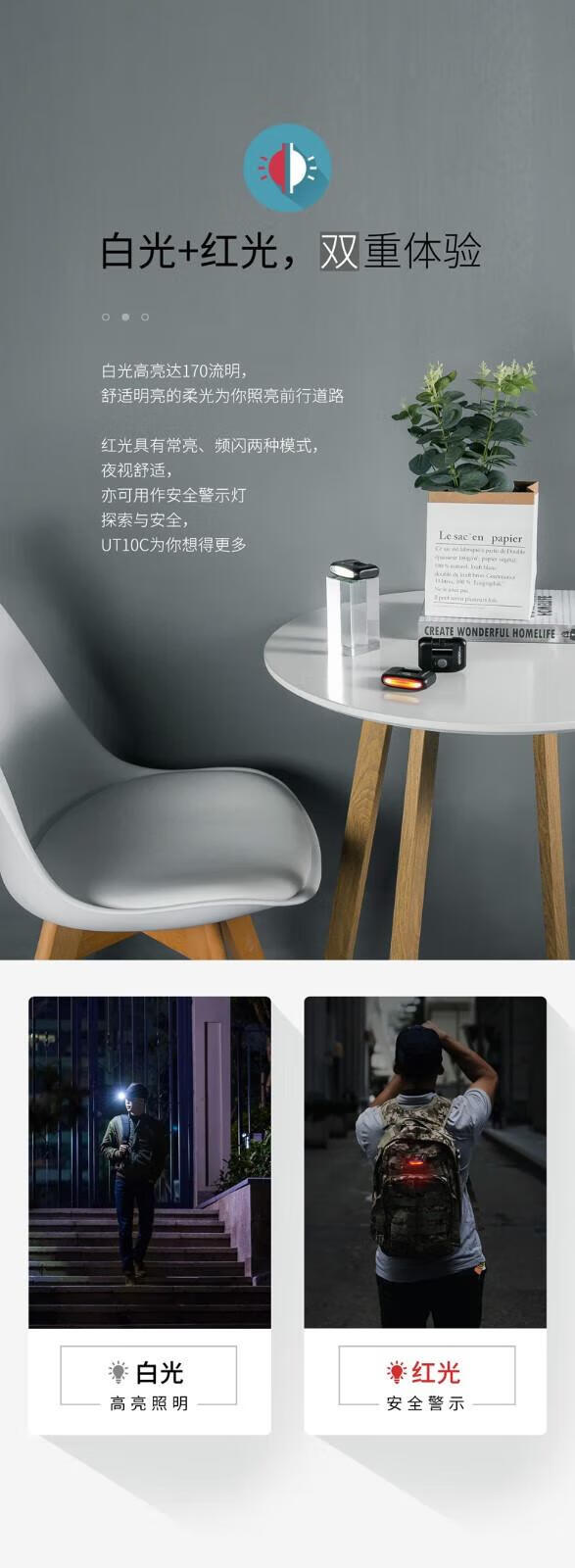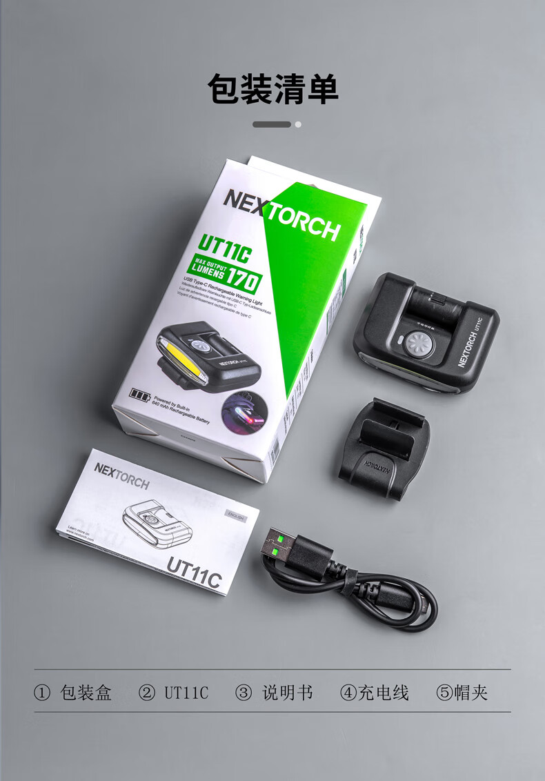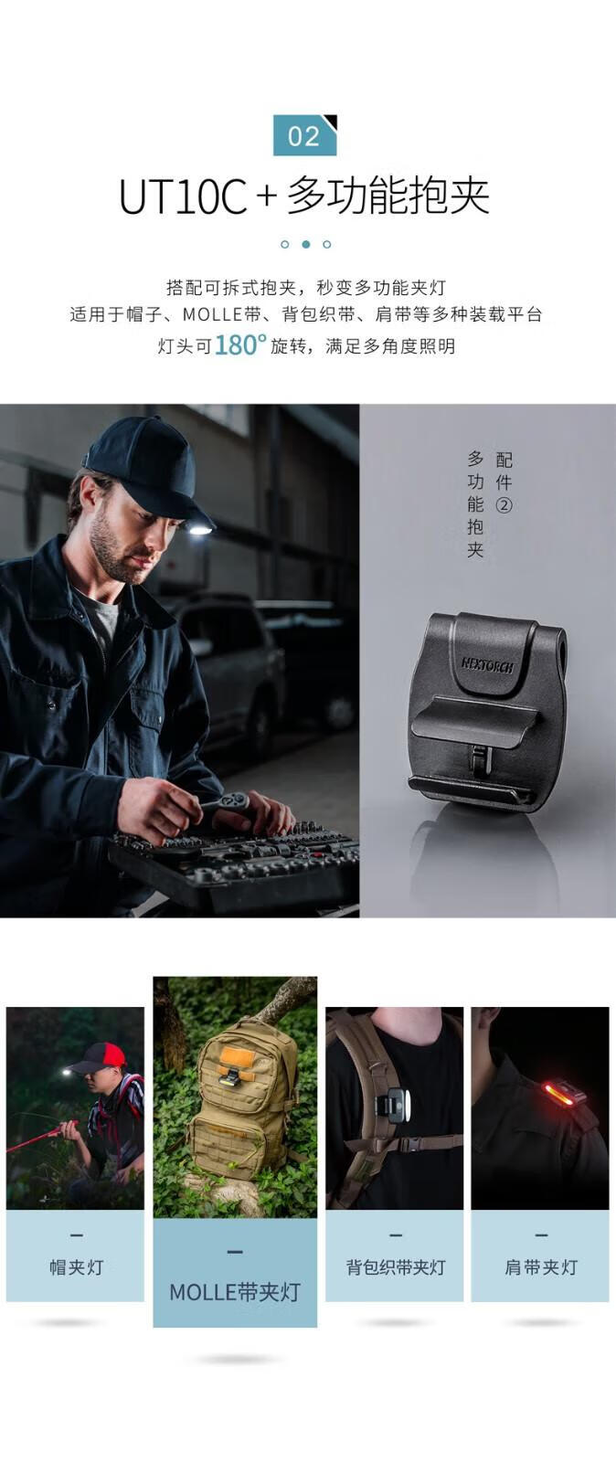 纳丽德(NEXTORCH)UT10C/UT11C泛光帽灯肩灯头灯可充电汽修钓鱼帽夹灯头戴式夜钓 UT10C帽灯
