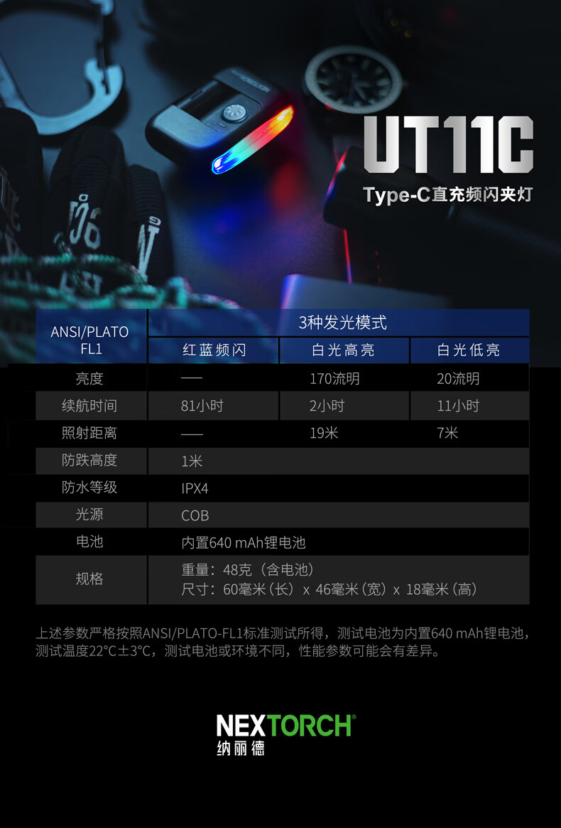 奈特科尔奈特科尔CL10户外多用途轻量夹灯三光源红蓝光照明便携式肩灯帽灯 CL10标配