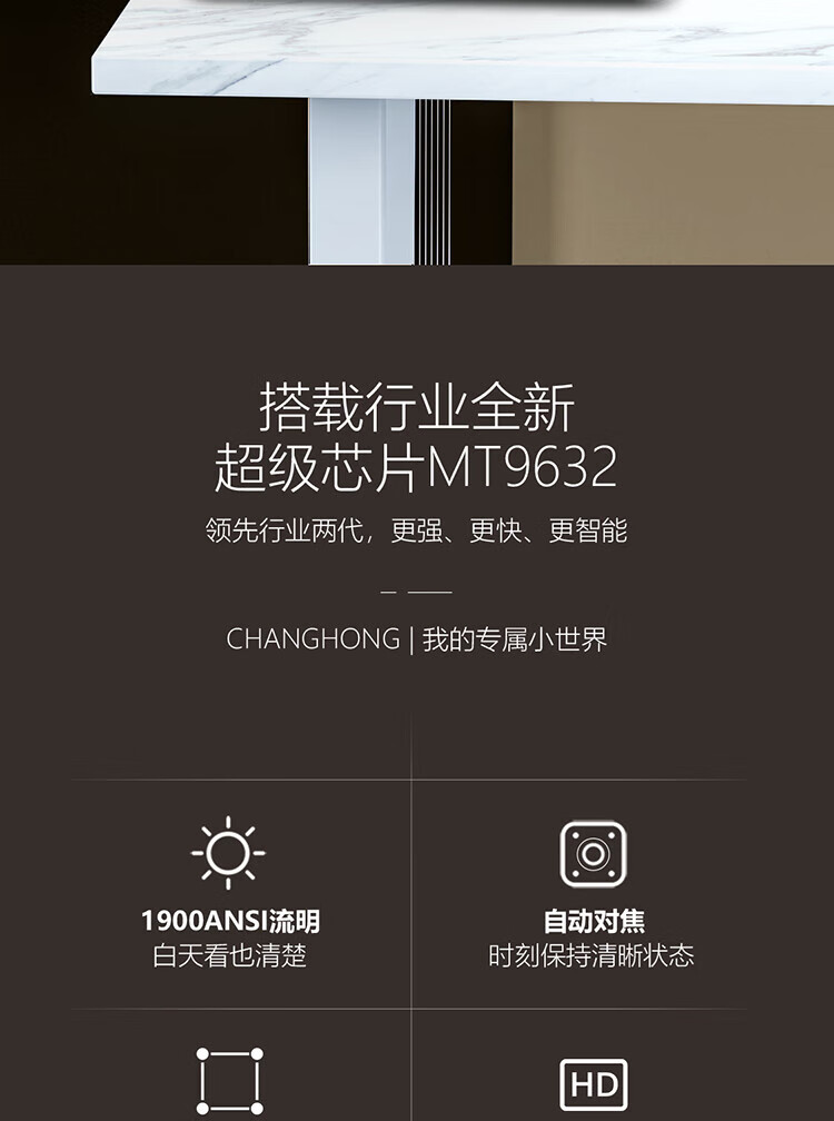 长虹智能投影仪 高清智能AI语音Q3H PLUS 家用小型家庭影院酒店足浴民宿影吧商务办公led投影机
