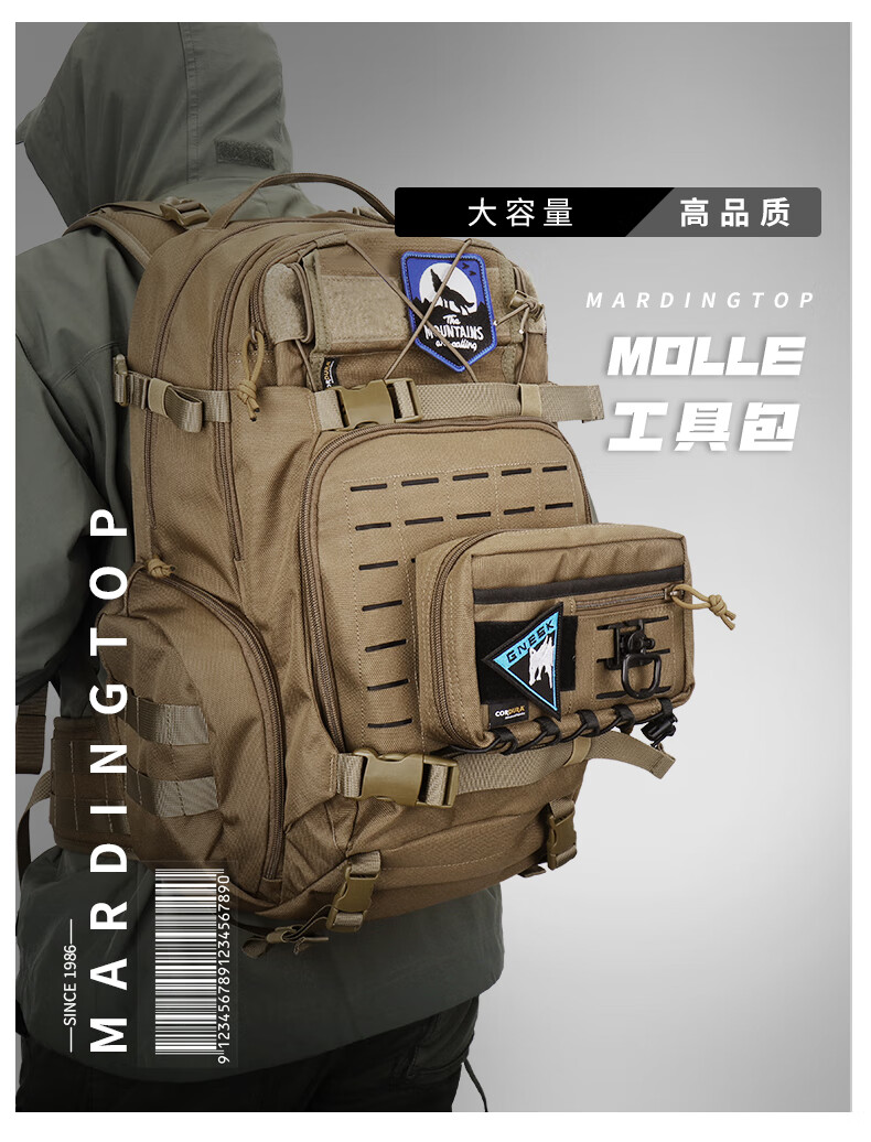 中国制造,就是耐造。Mardingtop品牌真是我们国货之光,性价比极高,做工用料,品质质量,绝对良心。此款MARDINGTOP登山露营运动徒步多功能外挂战术molle配件包工具拓展包副包实用性高,内部扩展空间充足,多种固定组合固定的形式,满足各种收纳需求。外挂再我Mardingtop 60L青面兽3.0版本背包外面更显霸气效果,增添了我主包的颜值和空间。配图仅供大家参考,推荐大家购买,适配该品牌各种主包都很酷很实用。